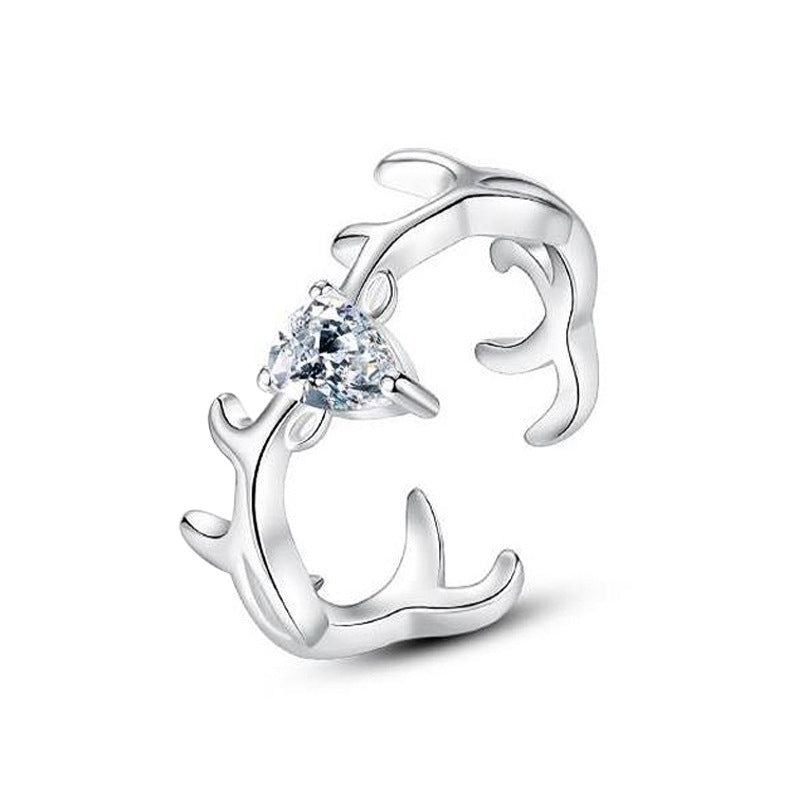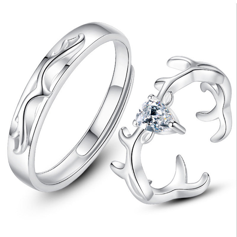 Antler with Zircon Silver Couple Ring for Women