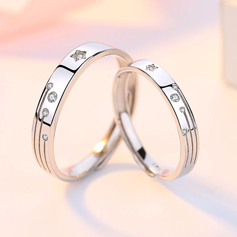 This stunning Zircon Meteor Shower Silver Couple Ring is the perfect accessory for any couple. Its unique Meteor Shower pattern is decorated with gorgeous Zircons and is adjustable for a comfortable fit. Make a statement with this eye-catching design.