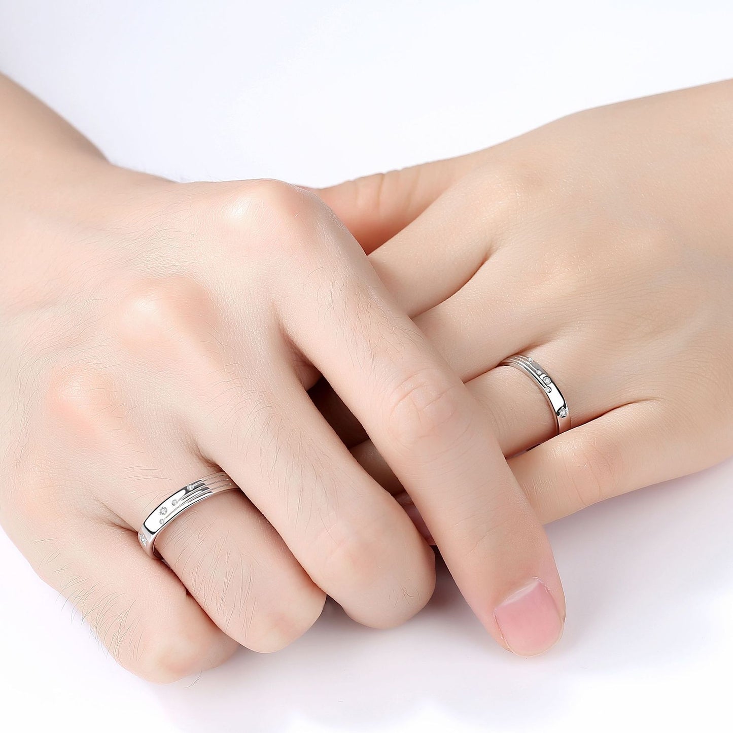 Zircon Meteor Shower Silver Couple Ring