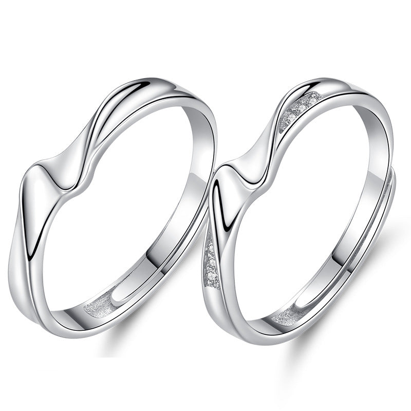 Geometric Wave with Zircon Silver Couple Ring for Women