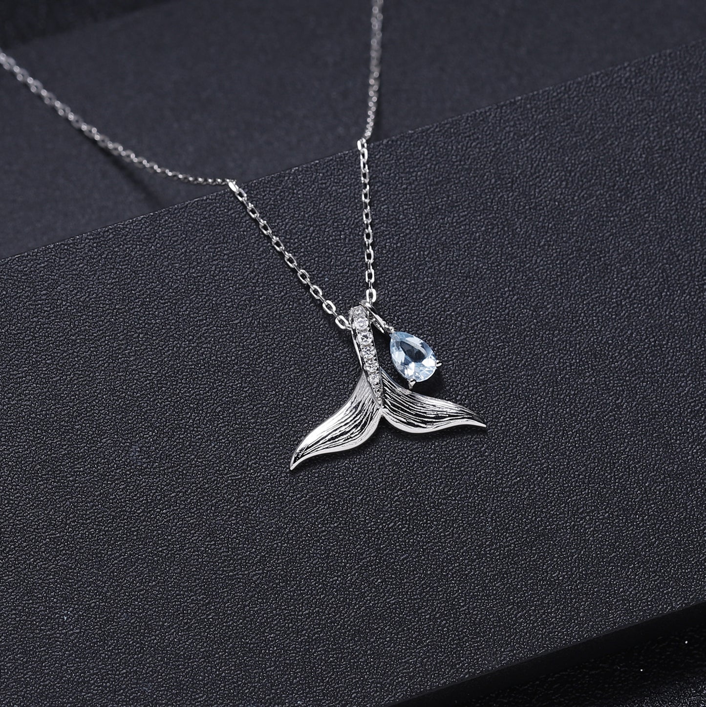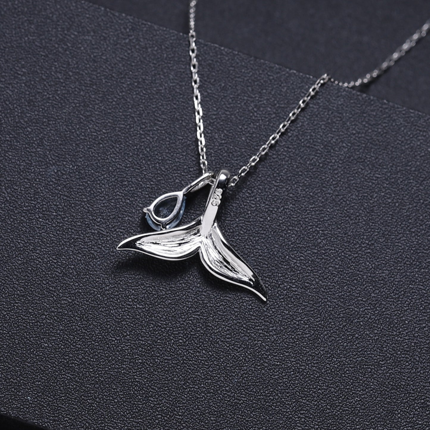 This Whale Tail Pendant Necklace is crafted from sterling silver and embellished with a different colour water drop gemstone. The necklace is an elegant and timeless way to express your love for the ocean and appreciation for fine jewelry. Its polished finish will make it a stylish addition to any outfit.