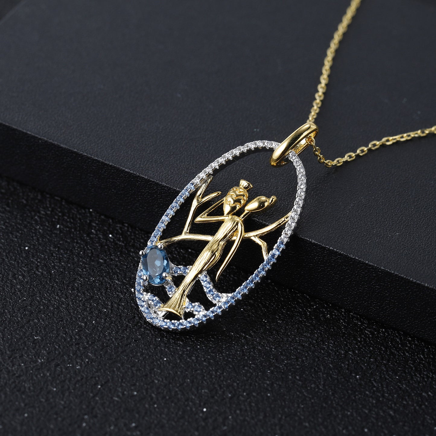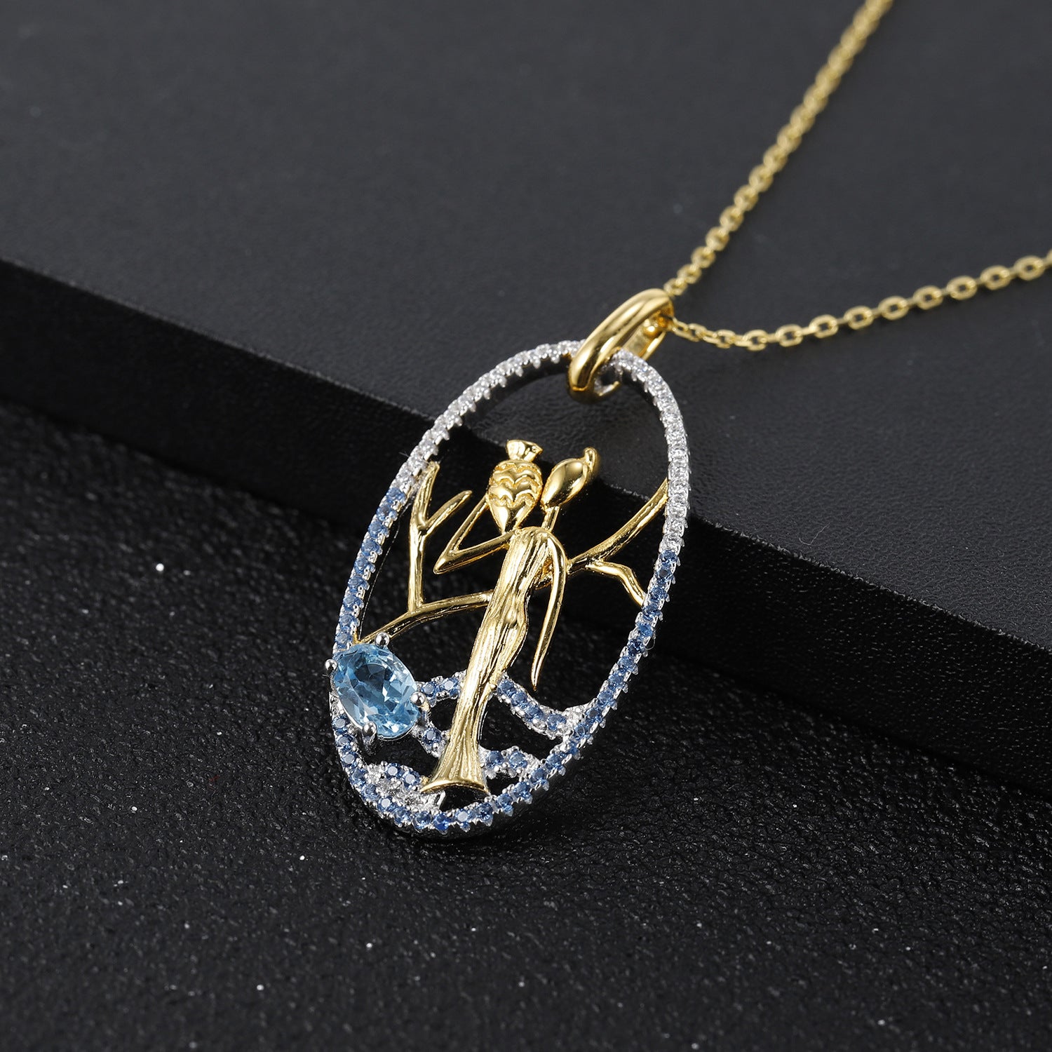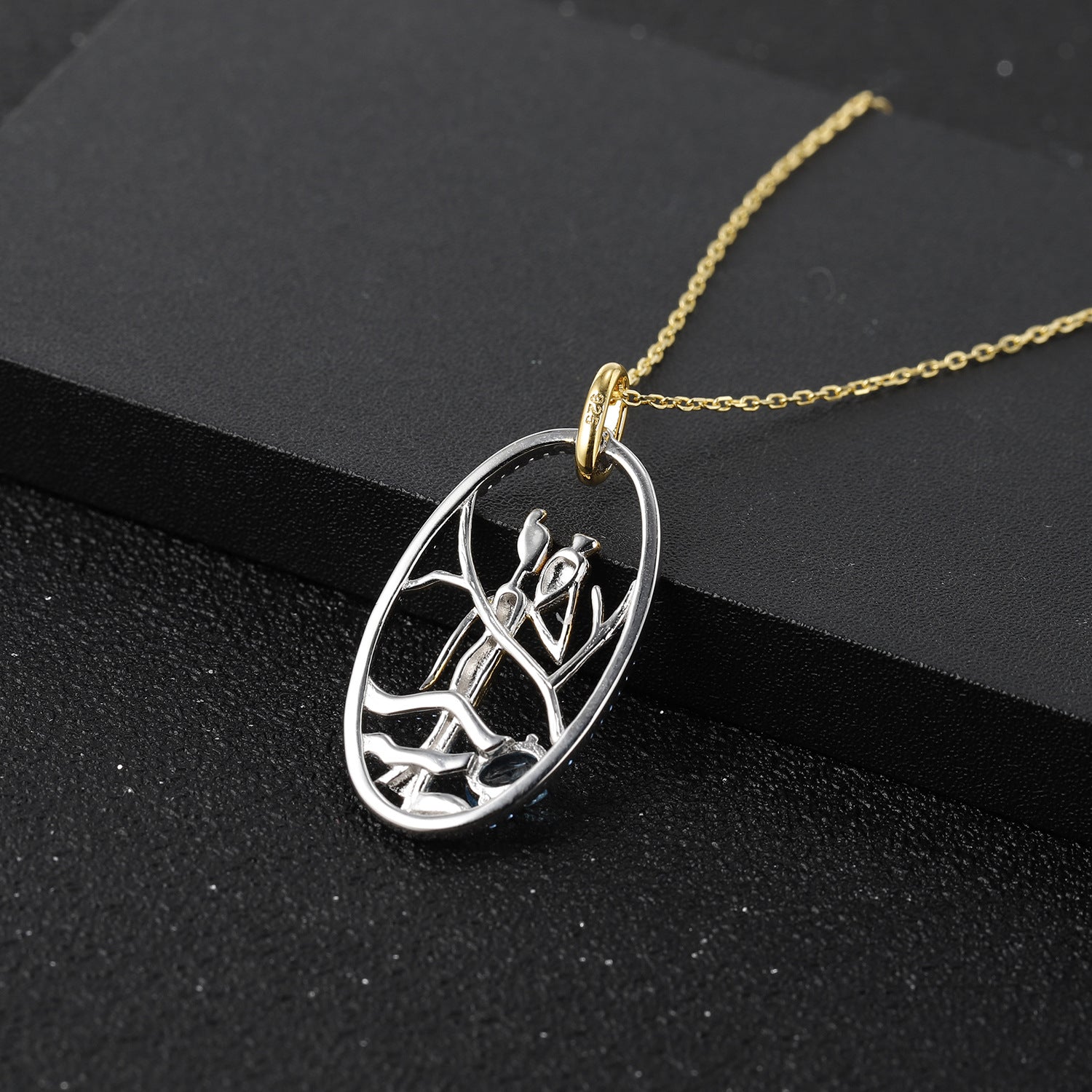 Personality Design Inlaid Colourful Gemstone The Women Tops The Vat Oval Pendant Silver Necklace for Women