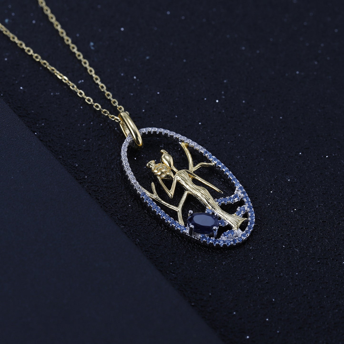 This stunning Silver Necklace from Personality Design is sure to be a show stopper. Featuring a unique oval pendant with a women-holding-the-jar pattern, it's enhanced with colorful gemstones for extra sparkle and shine. A true piece of jewelry to be treasured.