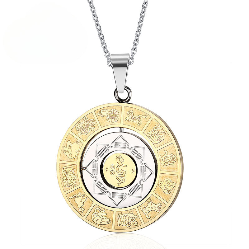 Introducing the stainless steel rotatable constellation pendant necklace, a stunning piece of horoscope titanium steel jewelry wholesale for men. This exquisite necklace is not just an accessory, but a reflection of your personality and astrological beliefs. Crafted from high-quality titanium steel, this pendant is designed to withstand the test of time while offering a unique and stylish representation of the constellations.