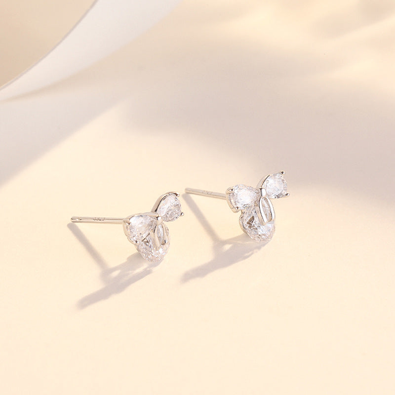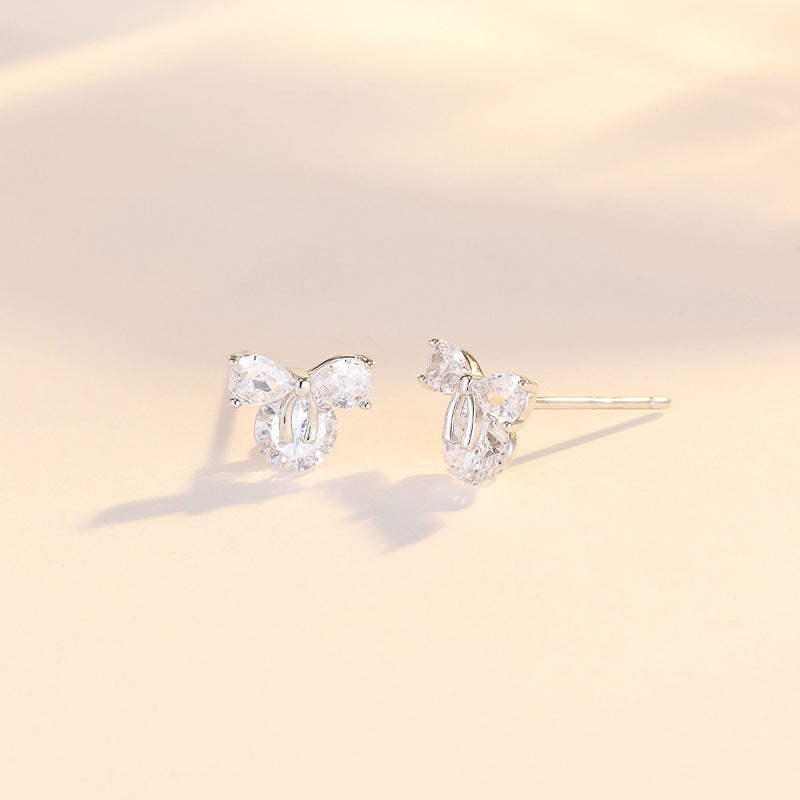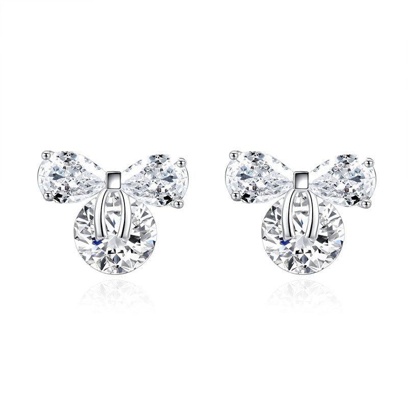 Zircon Bow with Round Zircon Silver Studs Earrings for Women