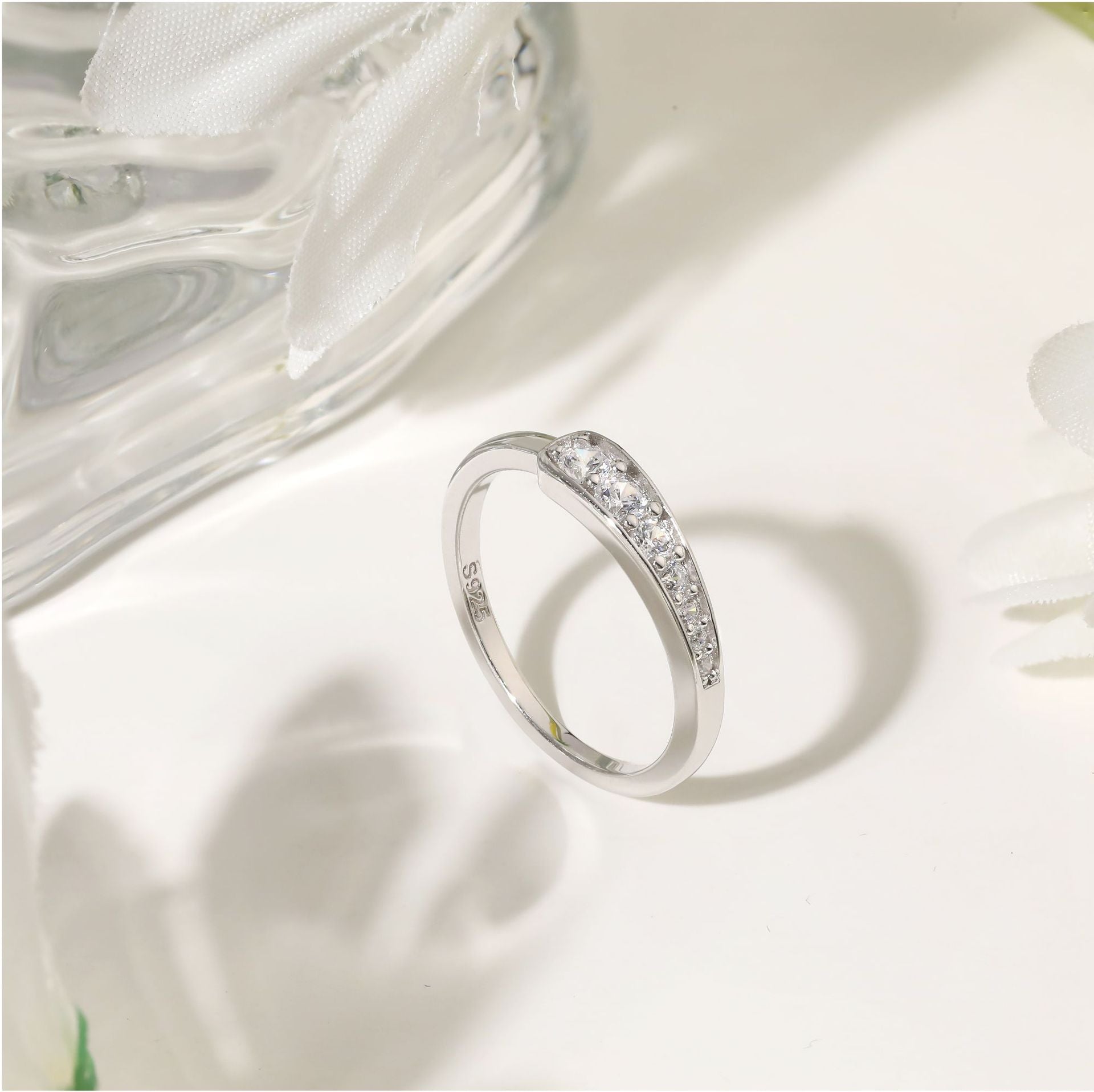 Sterling Silver Ring With Zircon Row By Planderful For Women Elegant Fashion Jewelry