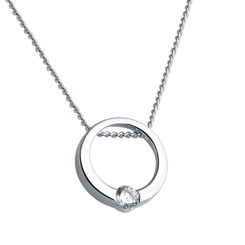 Round Zircon Hollow Circle Pendant Silver Necklace for Women