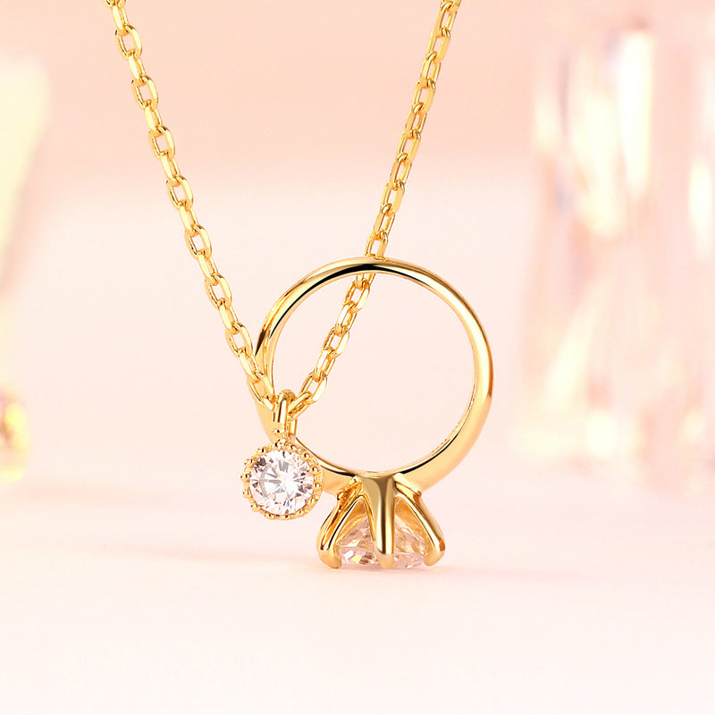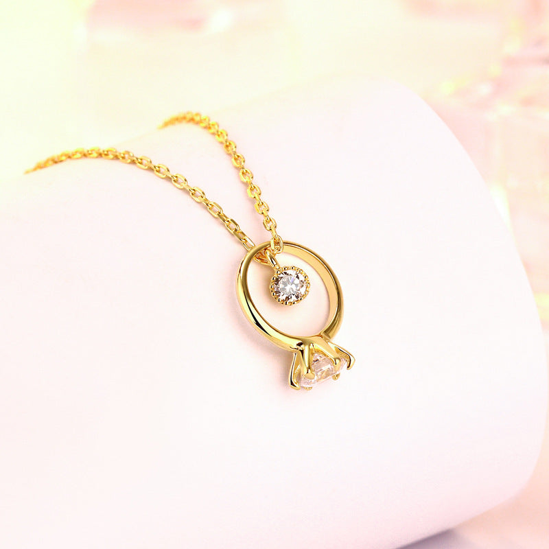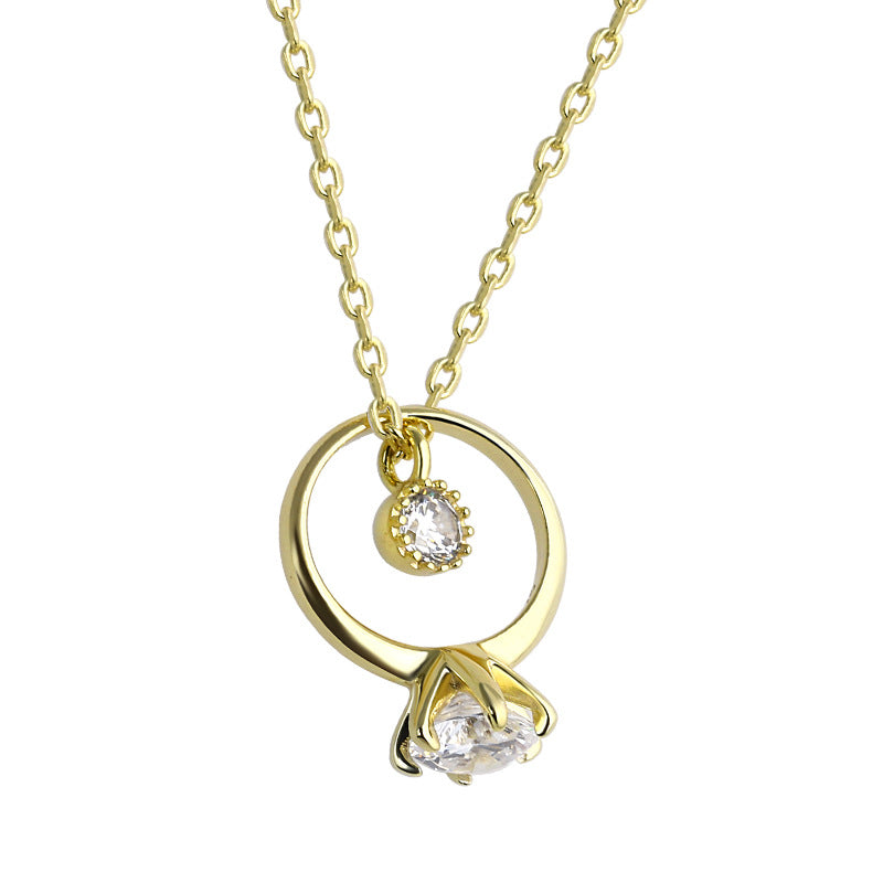 This stylish Zircon Ring Pendant Silver Necklace will make a perfect addition to any outfit. Featuring an unique pendant of a round Zircon ring and a small round zircon, it is crafted from sterling silver plated in gold for lasting quality and shine. This necklace is sure to become your go-to accessory.