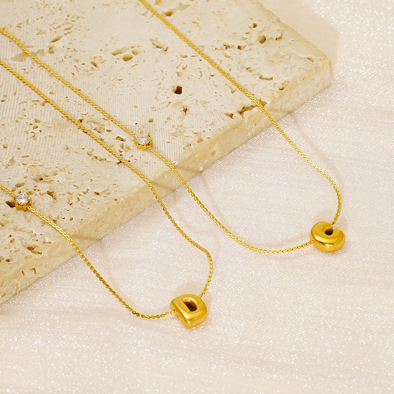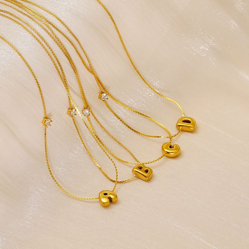 Planderful Jewelry Simple Chubby Bubble Letter Necklace Stainless Steel Personalization Pendant