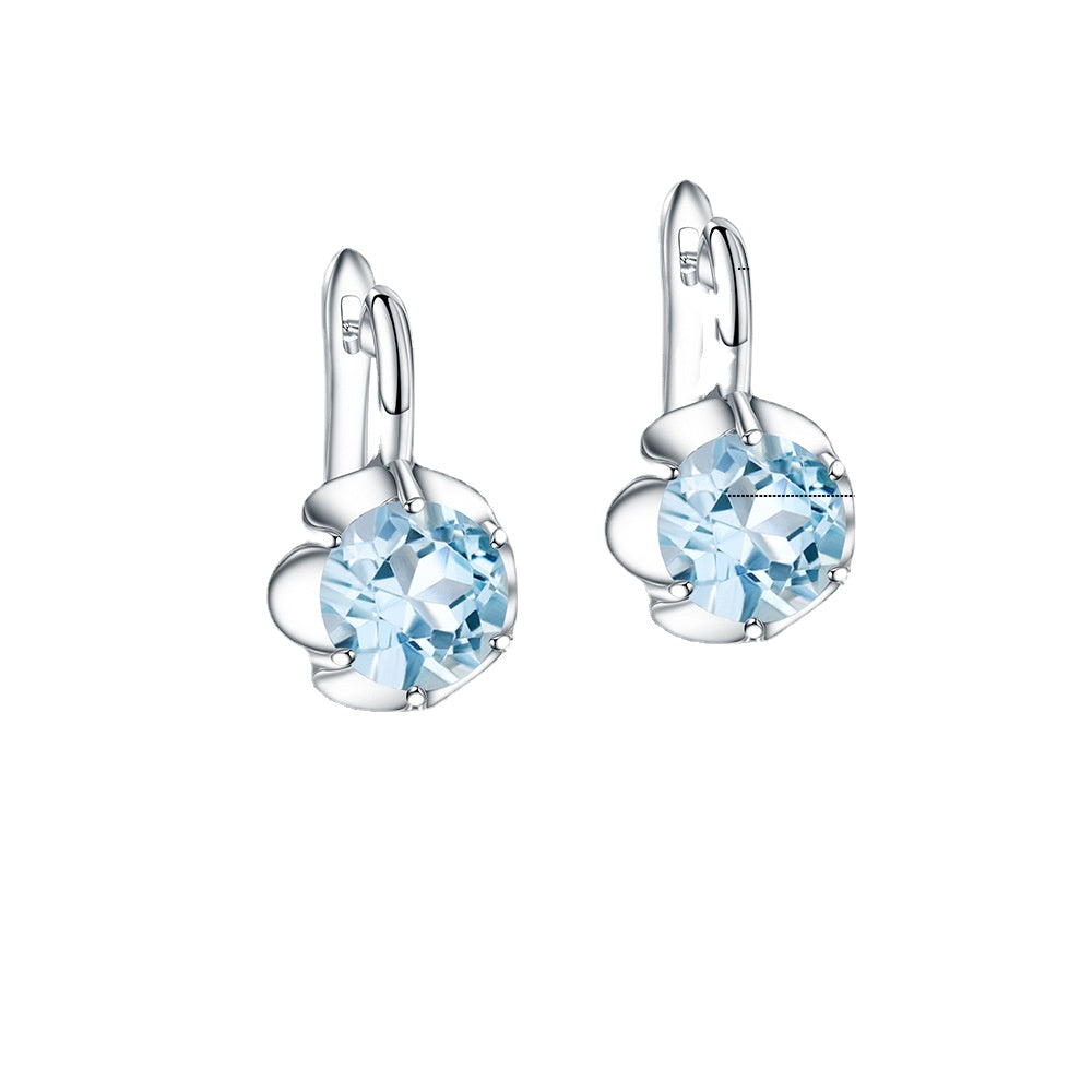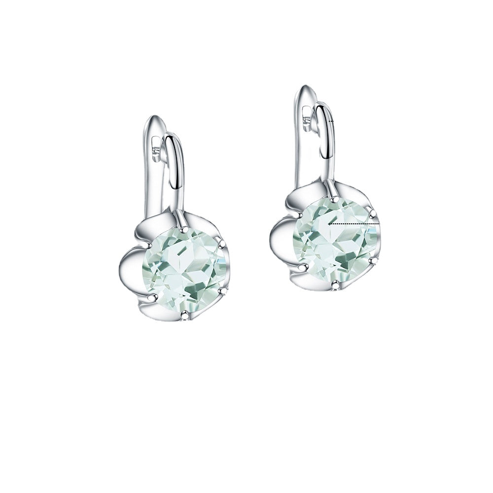 Round Cut Gemstone Flower Silver Stud Earrings