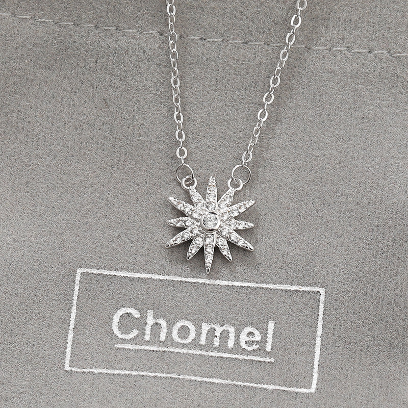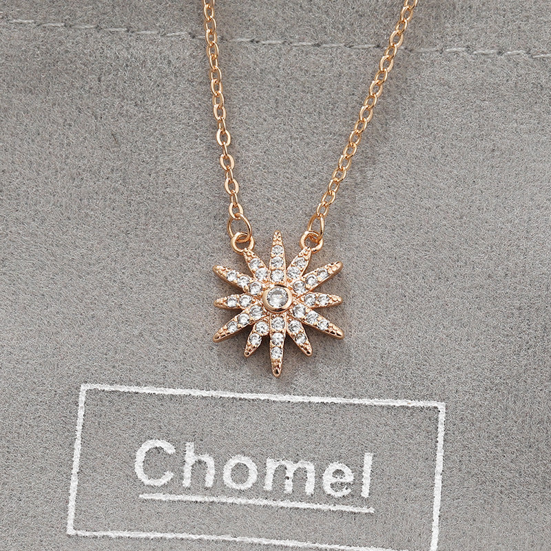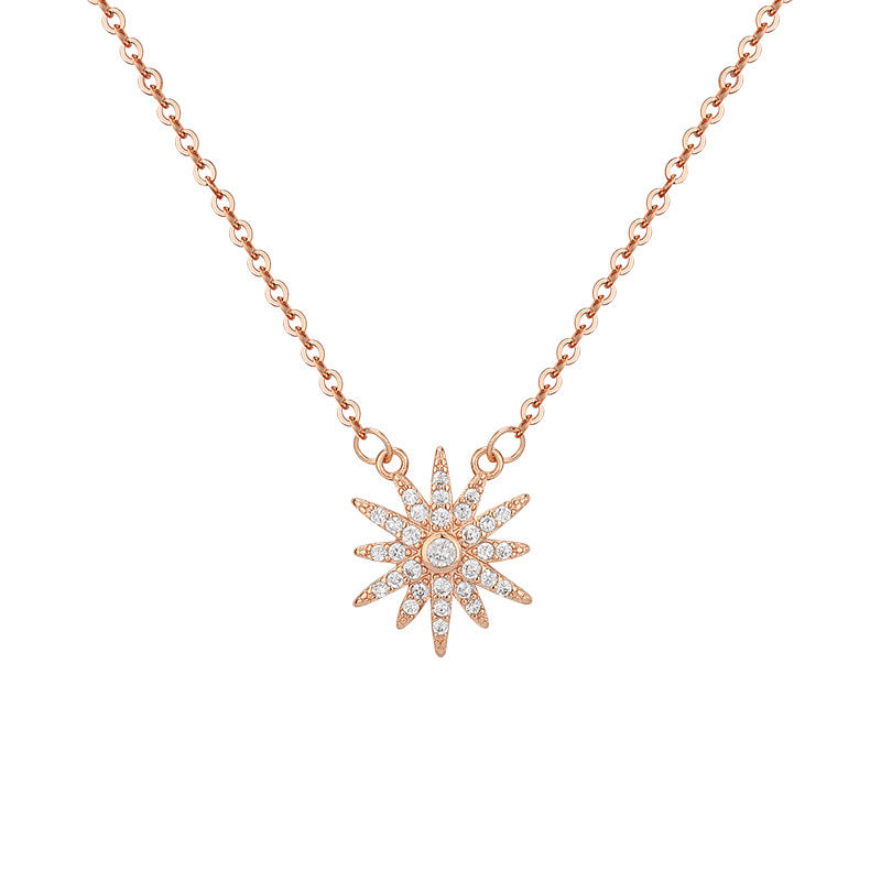 Zircon Sunflower Pendant Silver Necklace for Women