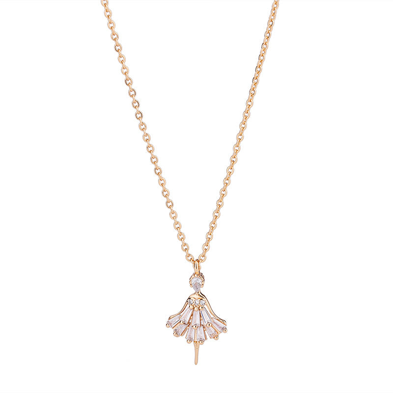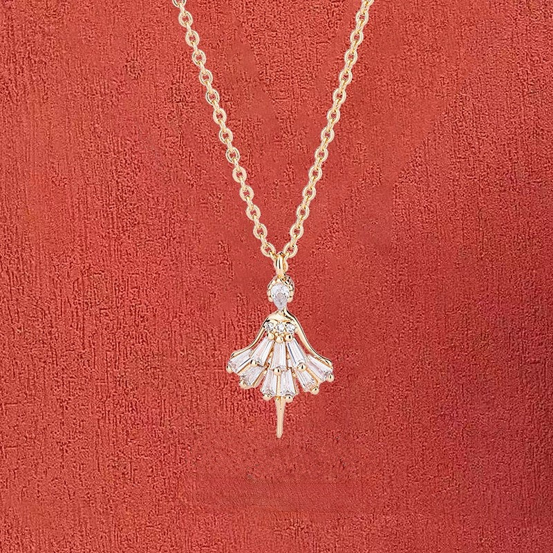 Zircon Ballet Girl Pendant Silver Necklace for Women