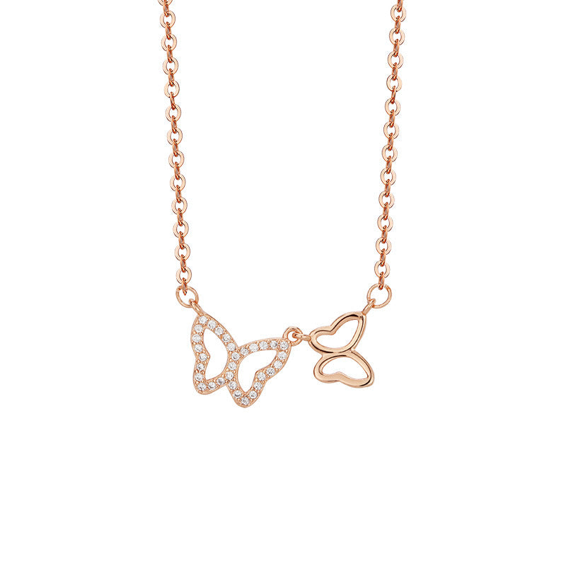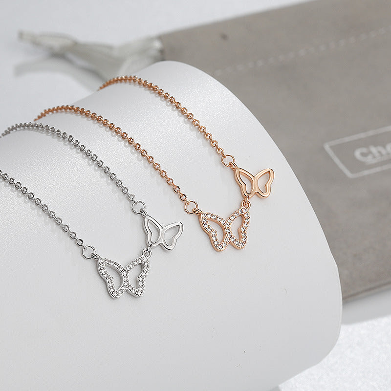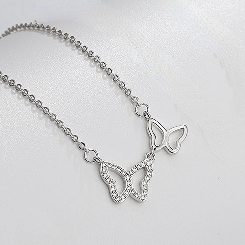 Hollow Two Butterflies with Zircon Silver Necklace for Women