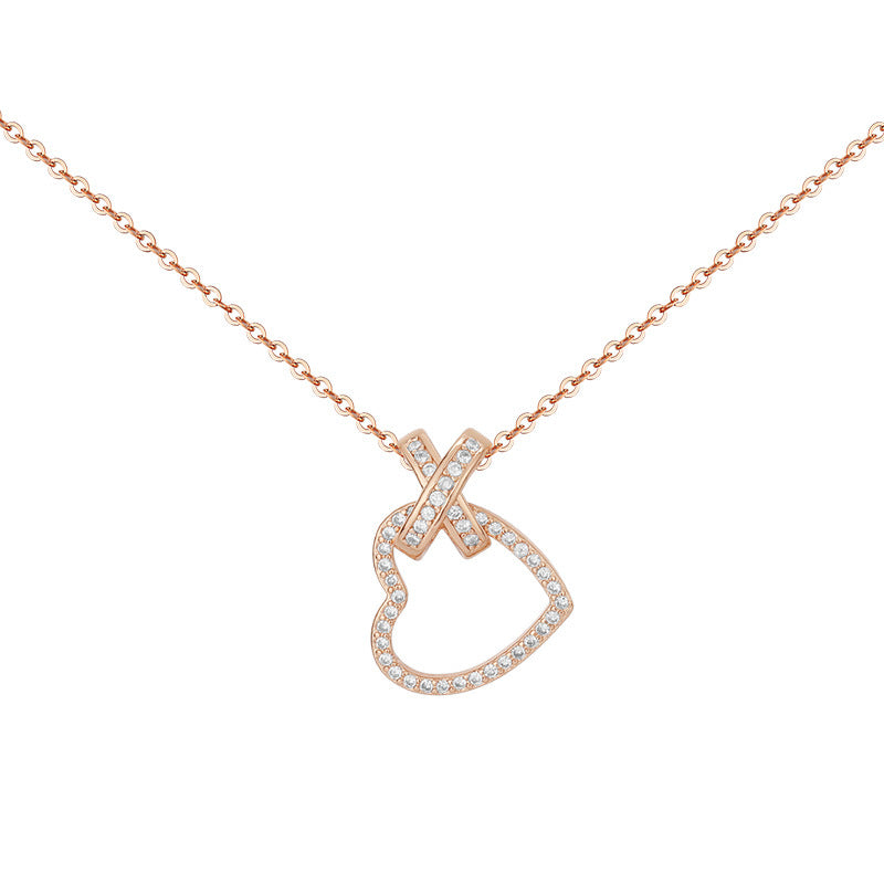 Zircon Hollow Heart X-shape Pendant Silver Necklace for Women