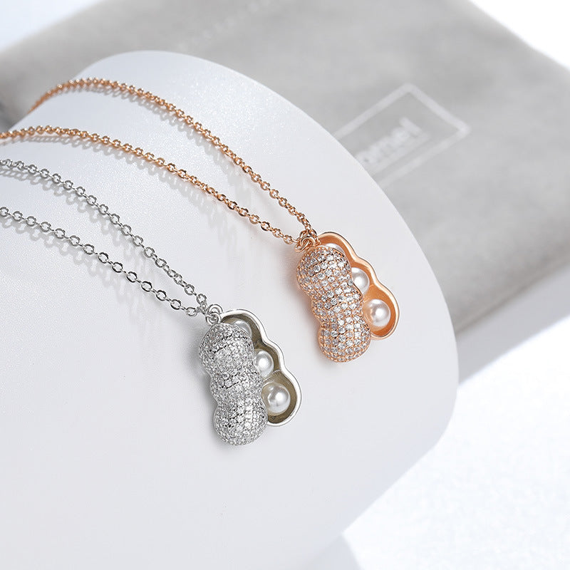 This elegant necklace boasts sparkling Zircon Peanut pendant with lustrous Pearl and crafted from sterling silver. It's the perfect accessory for any sophisticated woman looking to add a touch of glamour to her look.