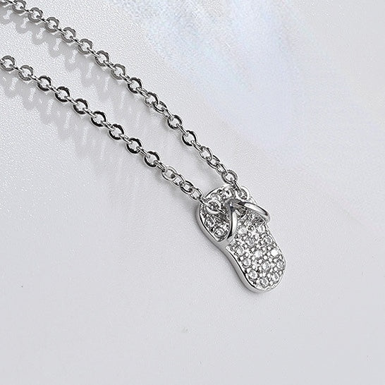 This stunning Zircon Slippers pendant necklace is the perfect way to add a touch of sophistication to any woman's wardrobe. Crafted from sterling silver and adorned with sparkling Zircon gems, this elegant necklace adds a touch of elegance and charm to any outfit.