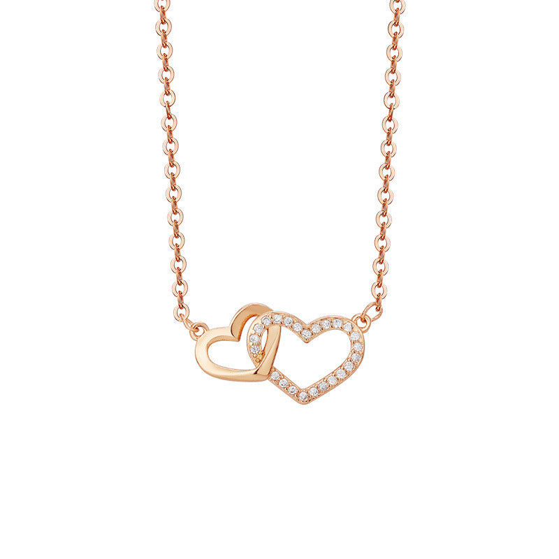 Two Hearts Interlocking with Zircon Silver Necklace for Women