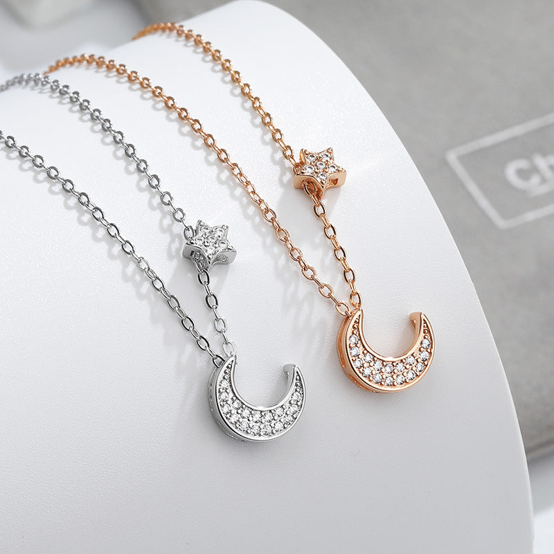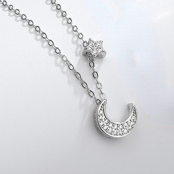 Zircon Moon Pendant with Star Silver Necklace for Women