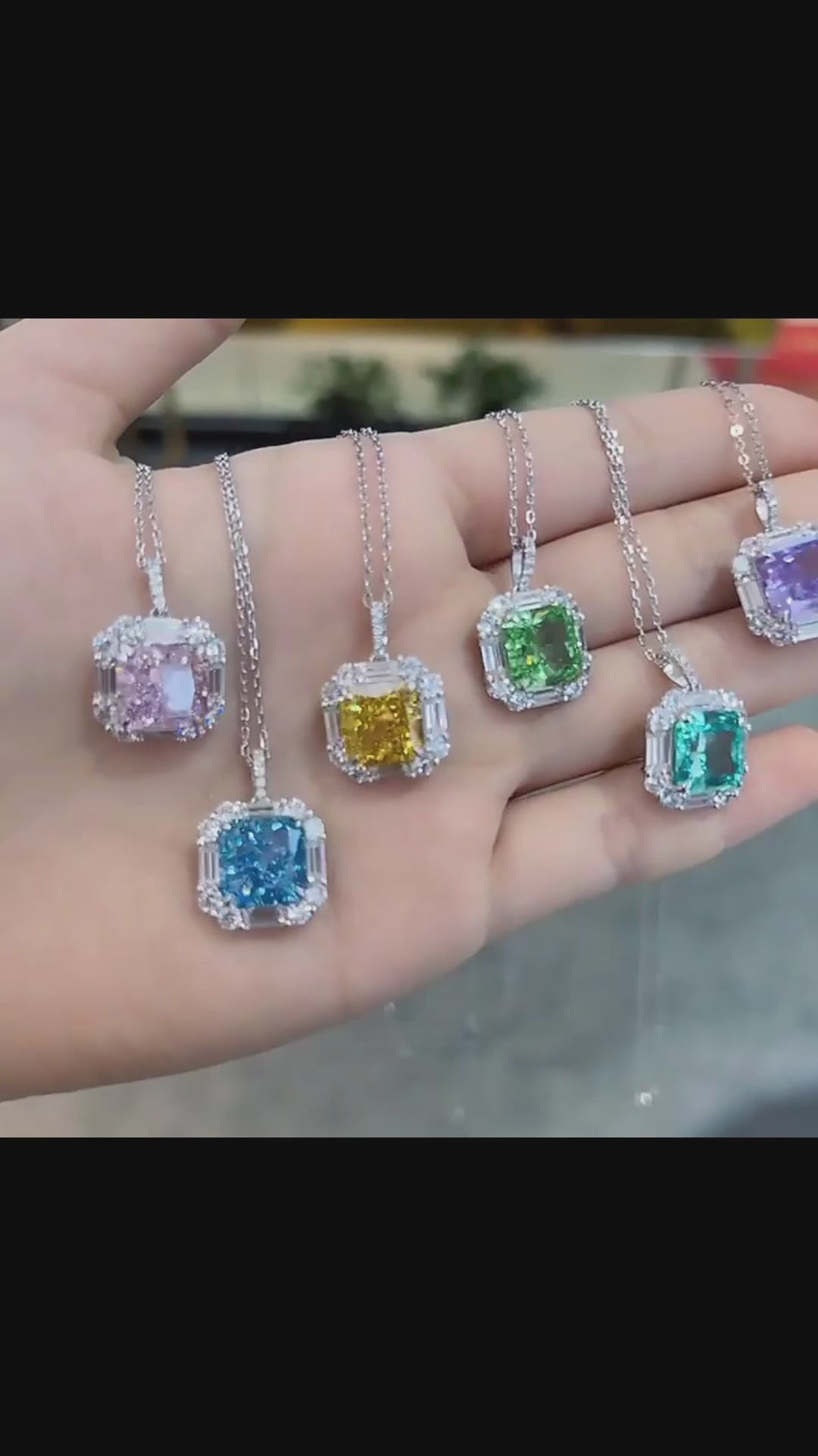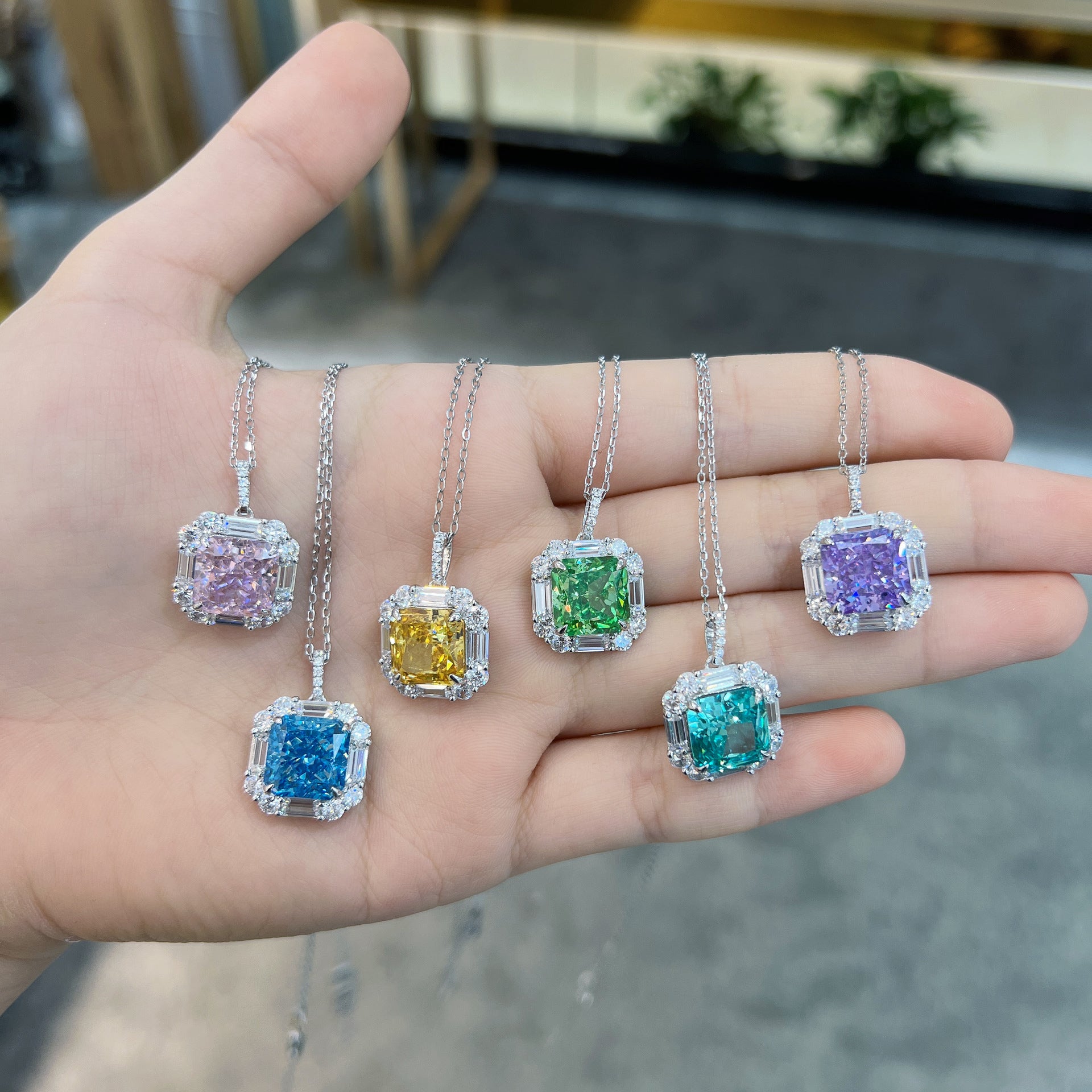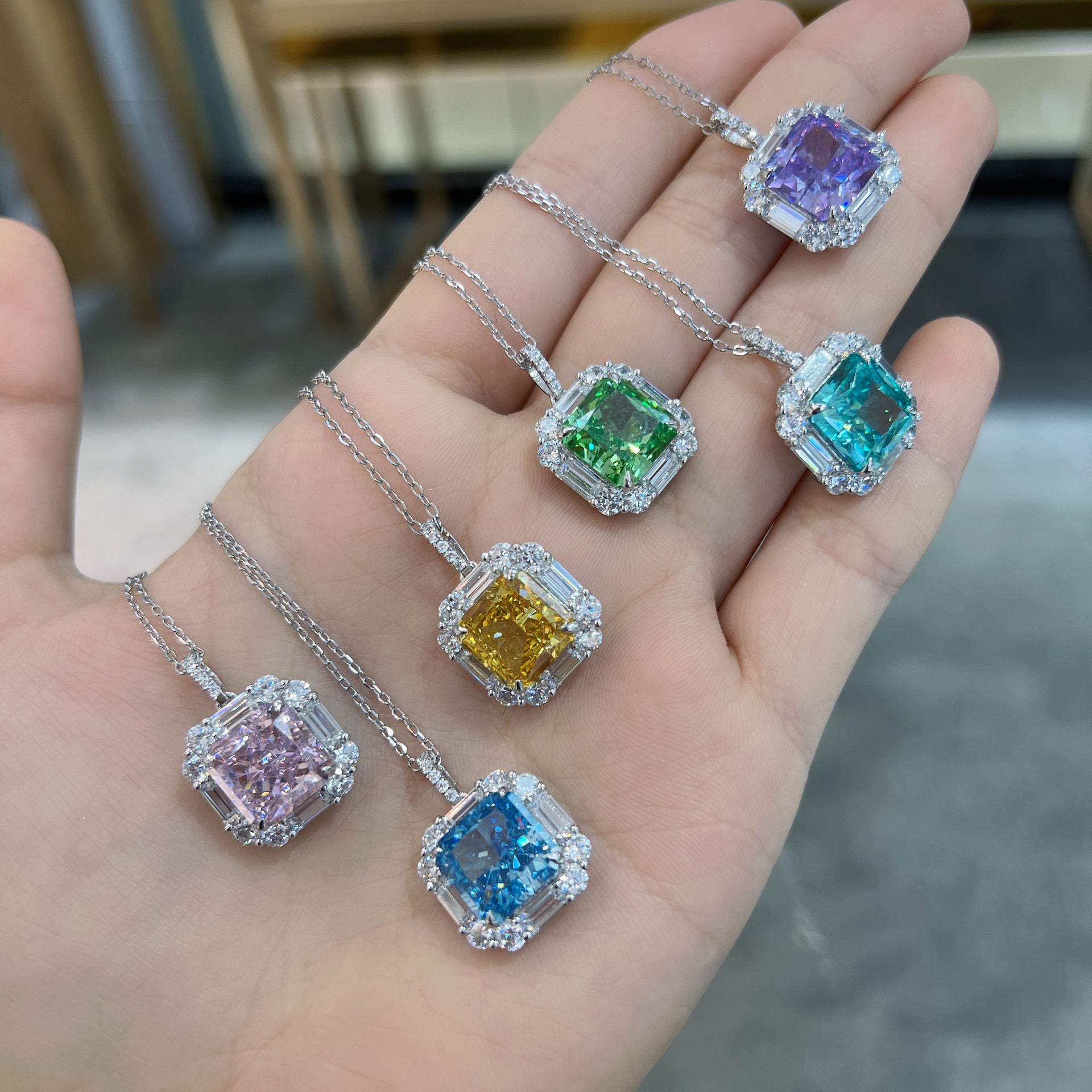 (Six Colours) Zircon 10*10mm Cushion Ice Cut Solitaire Pendants Necklace for Women