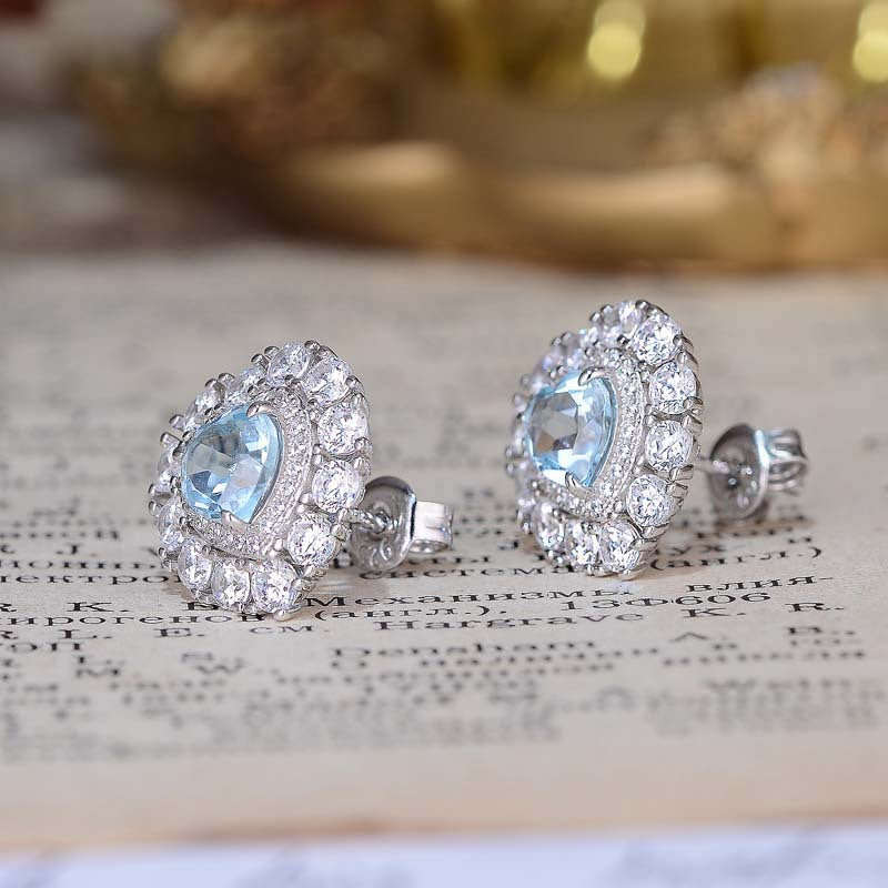 Halo Heart Shape Natural Blue Topaz Studs