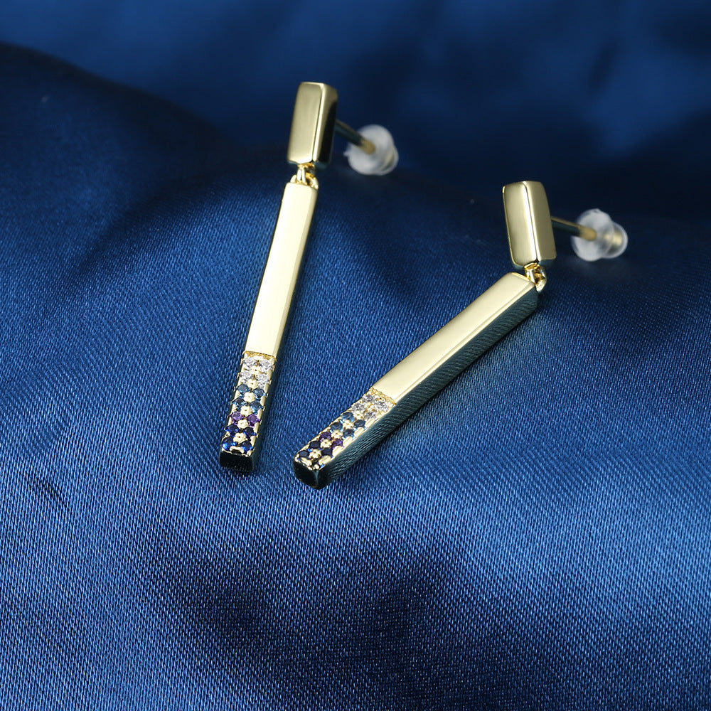 Small Golden Bar with Colourful Zircon Silver Drop Earrings for Women