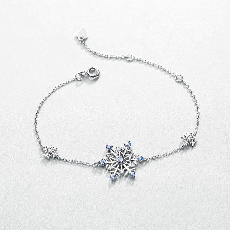Romantic Blue Spinel Zircon Hexagonal Snowflake Sterling Silver Bracelet