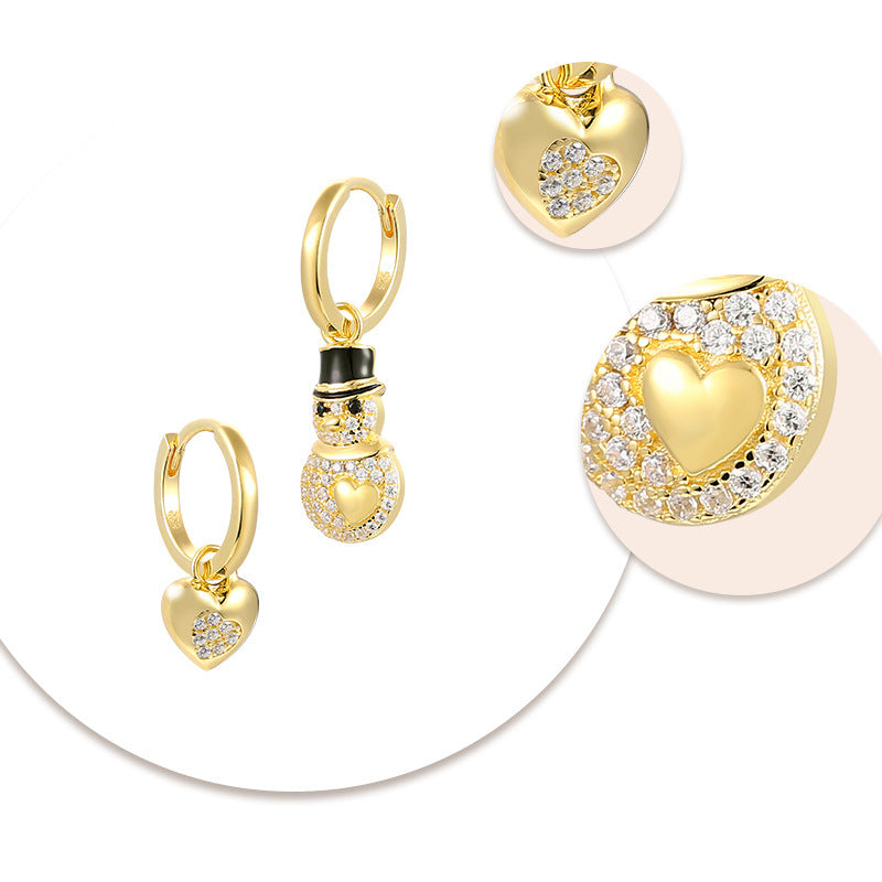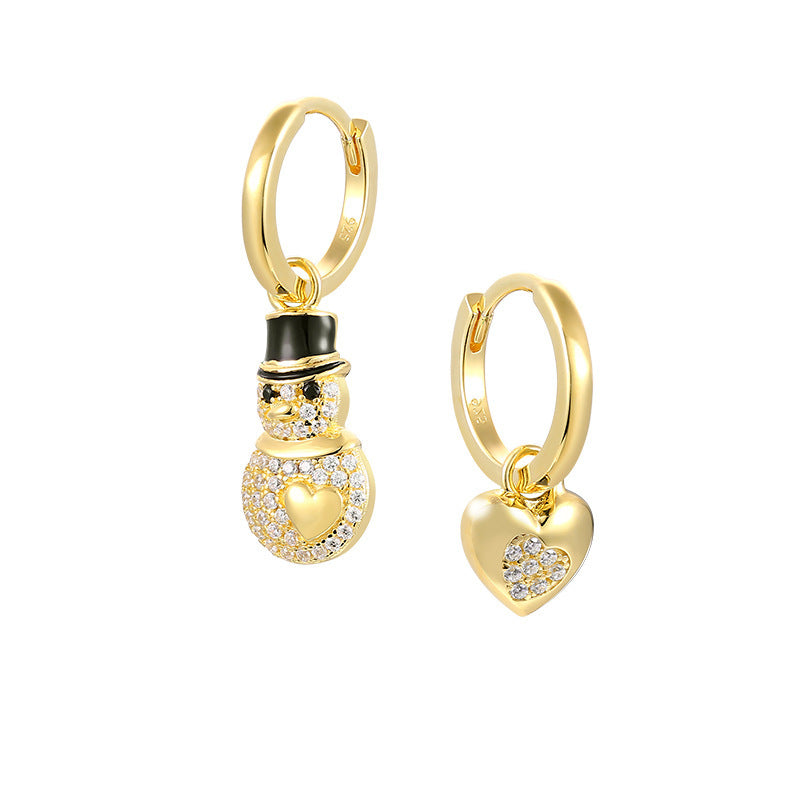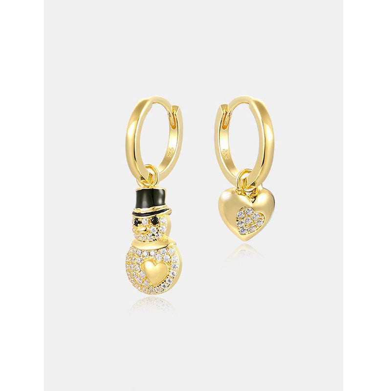 This Zircon Snowman Asymmetric Silver Hoop Earrings is perfect for adding subtle sparkle to any look. Crafted from sterling silver with an asymmetric design, they feature a snowman and heart pendant with delicate zircon detailing to catch the light. It's elegant and eye-catching for you.