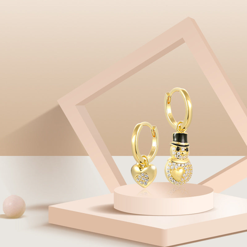 Zircon Snowman Asymmetric Silver Hoop Earrings for Women