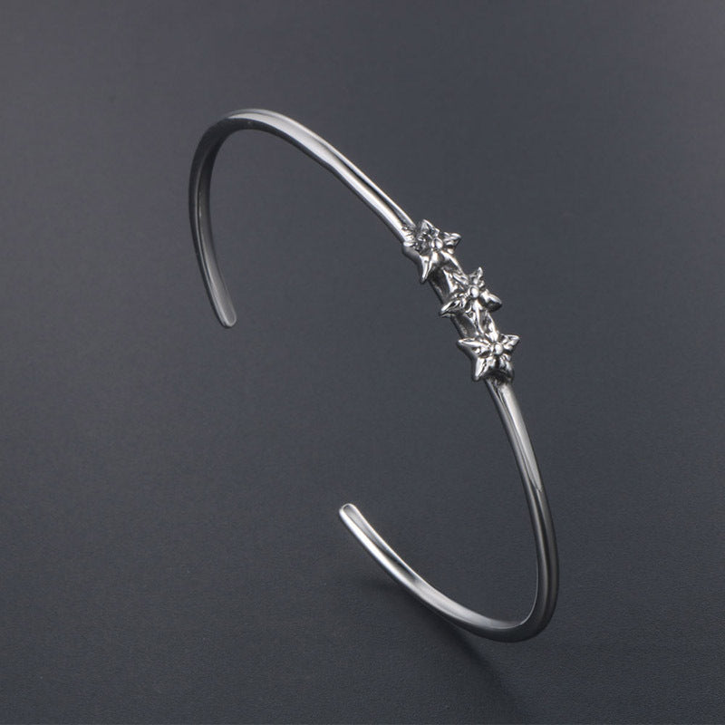 Vintage-Inspired C-Shaped Titanium Steel Pentagram Bracelet - Stylish Accessory for Trendy Girls