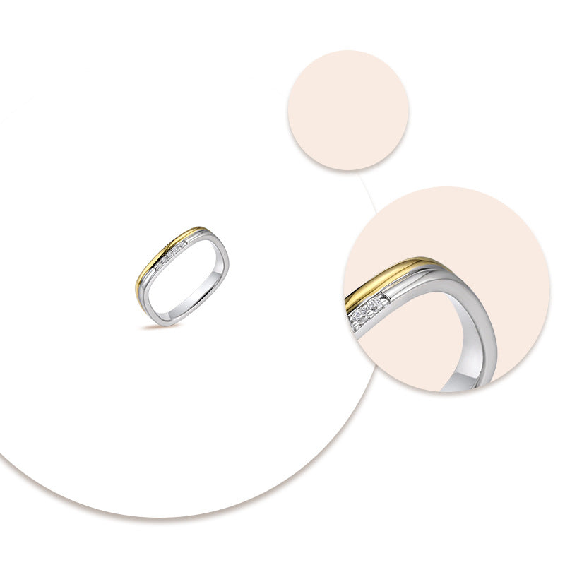 This elegant Two Colours with Zircon Silver Ring features a unique combination of silver and gold colours, the square shape ring decorated with zircon, making it a truly eye-catching piece of jewelry. It's a must-have for anyone looking to make a bold and stylish statement.