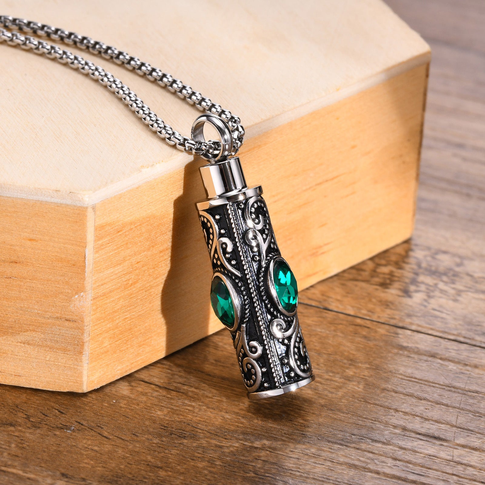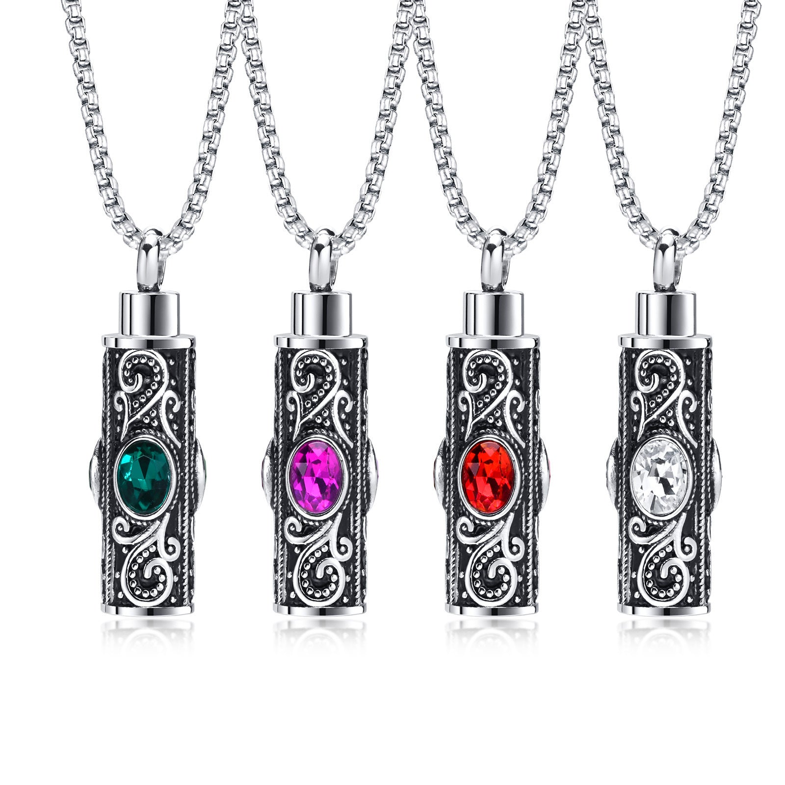 Embrace the blend of style and sentiment with our Stainless steel acrylic birthstone urn can be opened pendant men's necklace, personalized jewelry accessories for men. Order yours today and cherish the memories in a fashionable way!