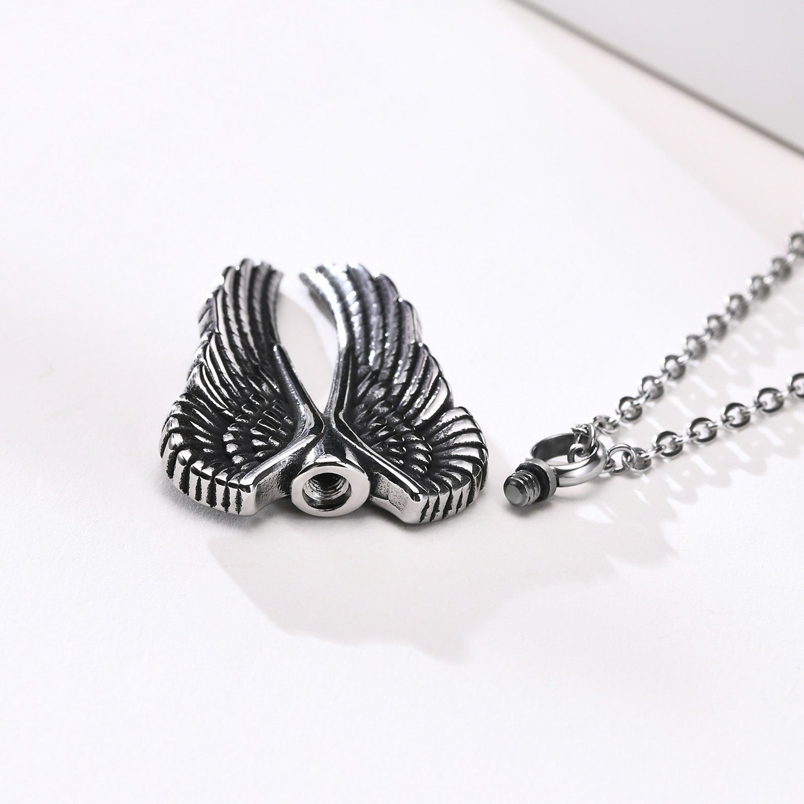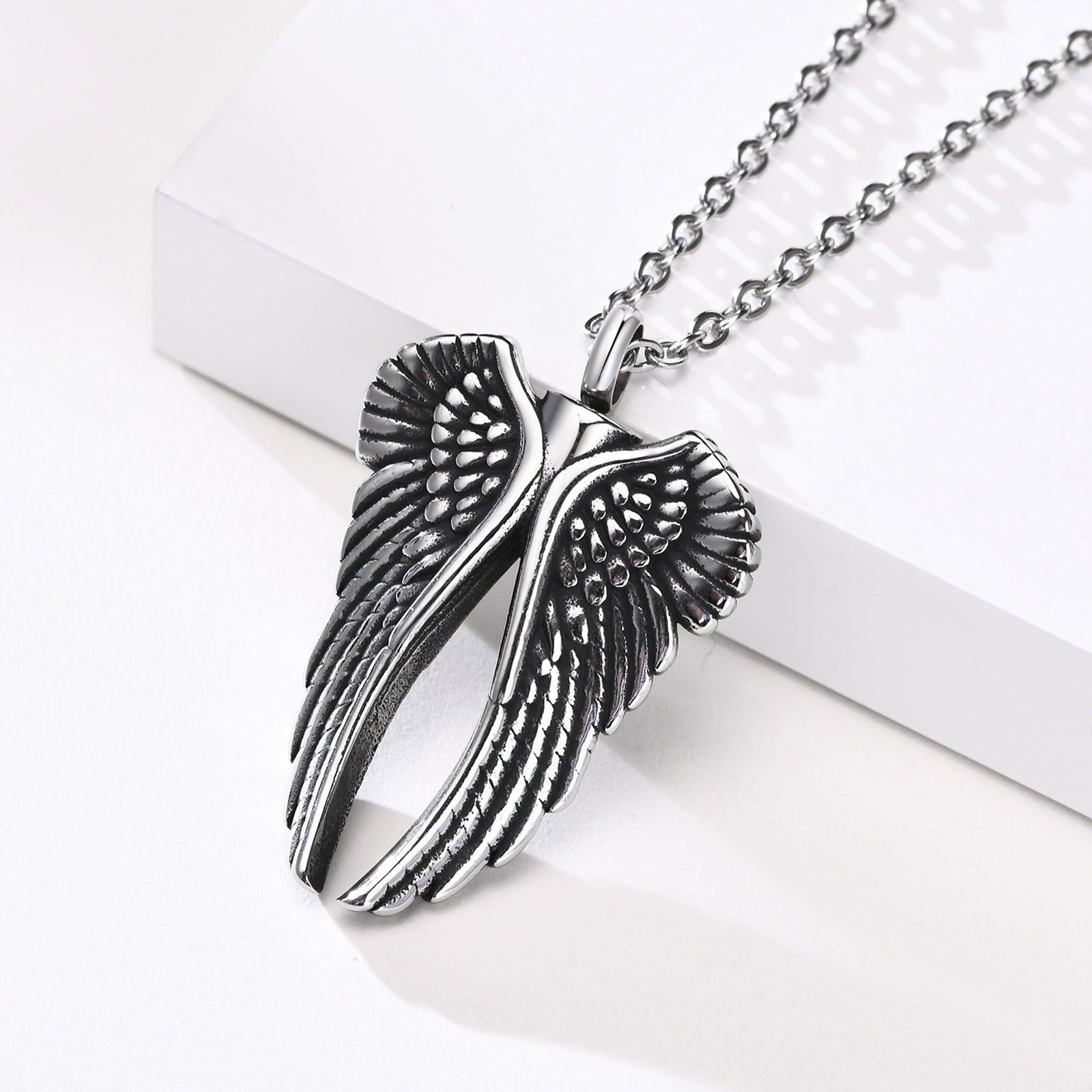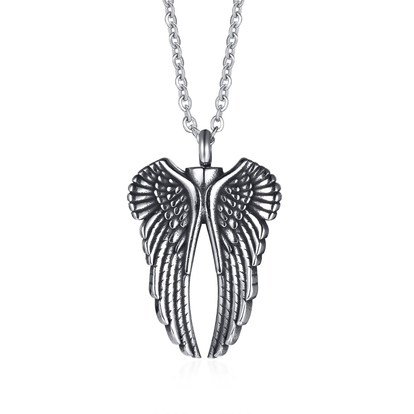 Stainless Steel Angel Wings Urn Pendant Necklace for Men