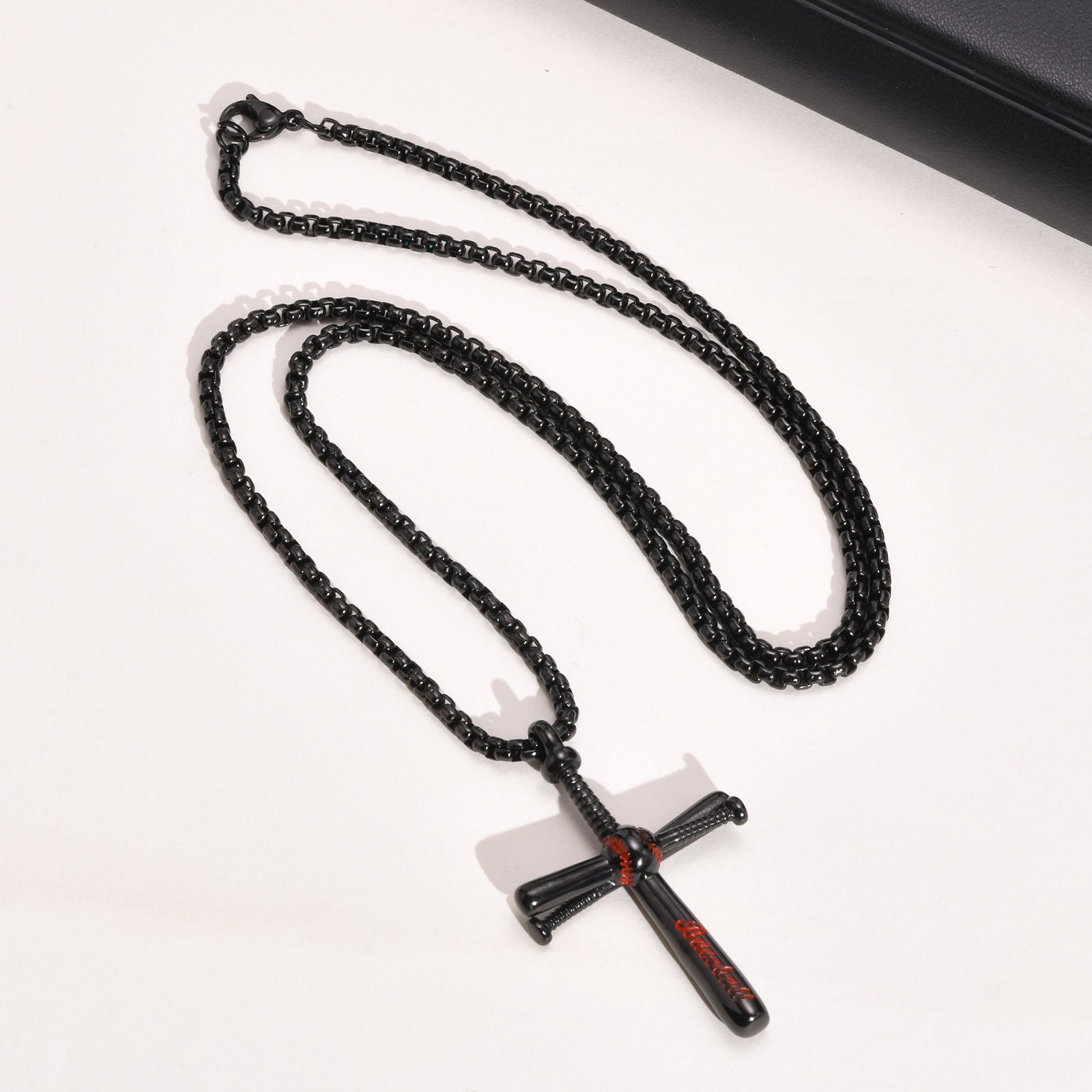 Discover the ultimate statement piece with our Stainless Steel Baseball Cross Pendant Necklace Black Men's Tide European and American Jewelry, Jewelry for men. This striking necklace seamlessly blends edgy style with timeless elegance, making it a versatile accessory for any occasion. Crafted from durable titanium steel, it promises longevity while maintaining a sophisticated look.