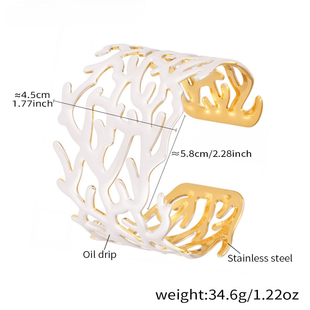 Discover the Planderful Stainless Steel Coral Red Open Bracelet, a bold statement piece designed for everyday glamour. This bracelet blends a coral red enamel accent with a durable stainless steel base, finished with luxurious 18k gold plating for a high-end, fashion-forward look.
