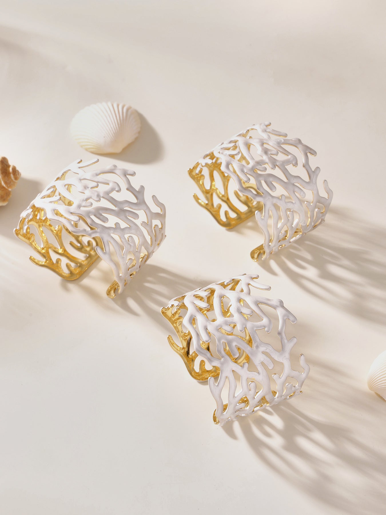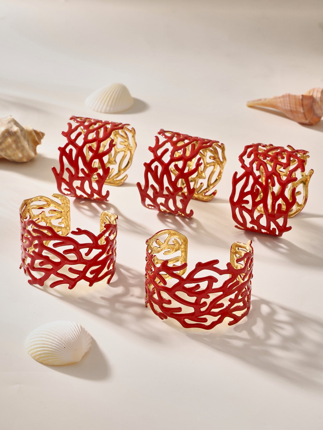 Planderful Bold Gold Plated Open Bracelet Coral Red Women