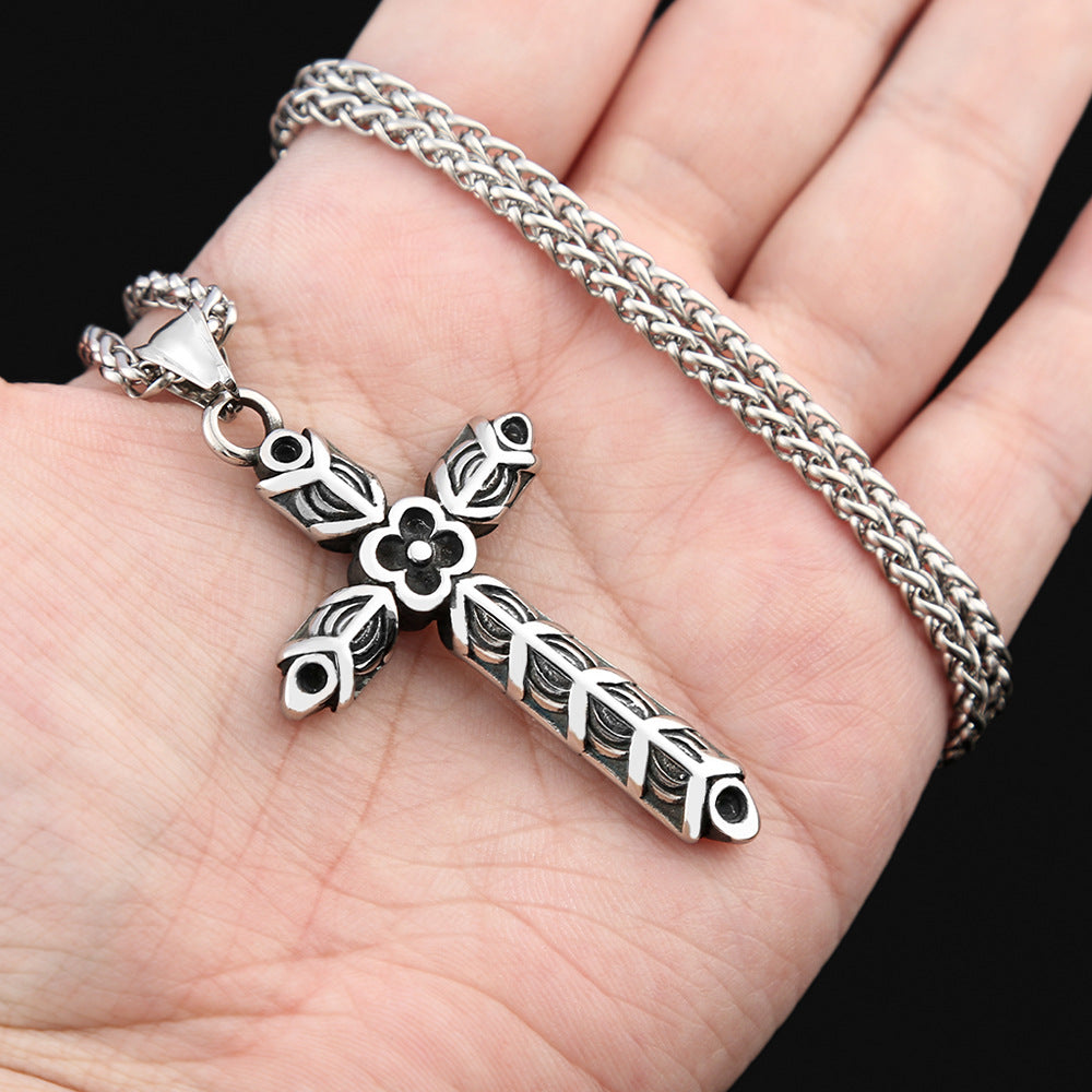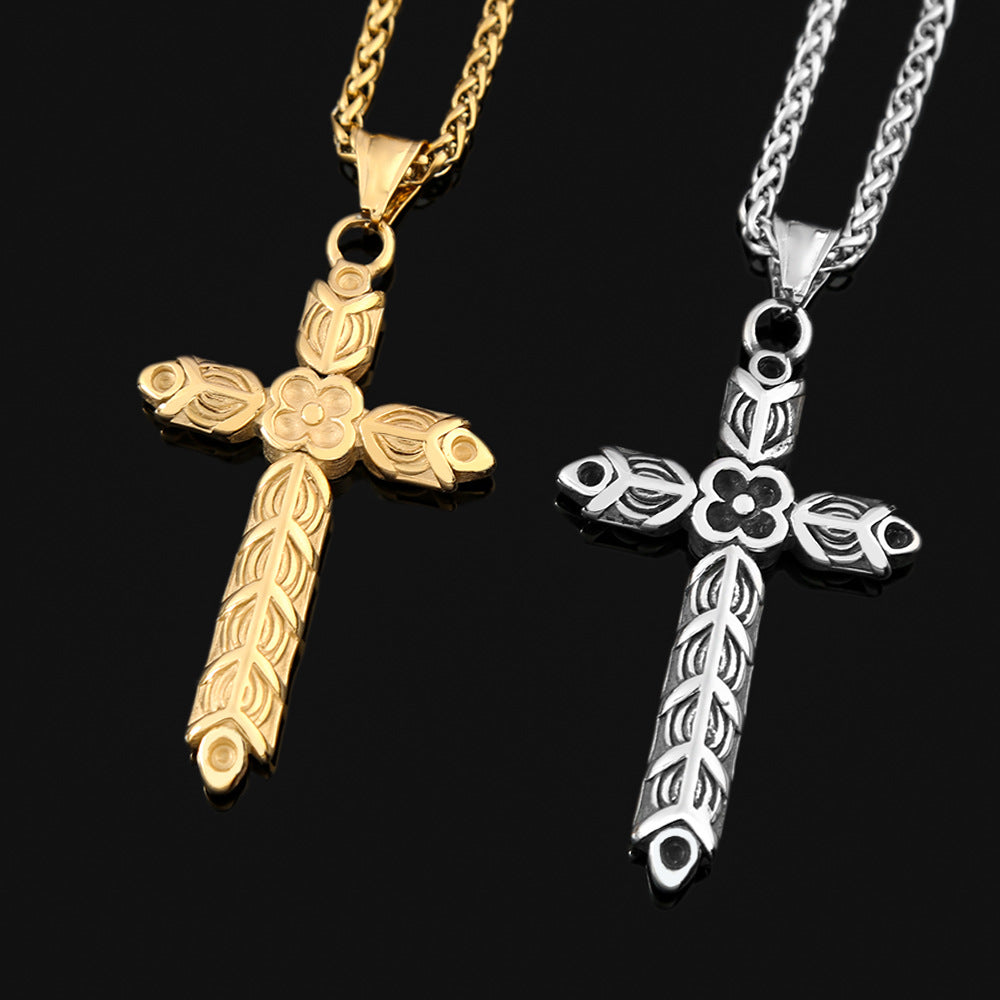 Stainless Steel Cross Flower Necklace for Men with Chain