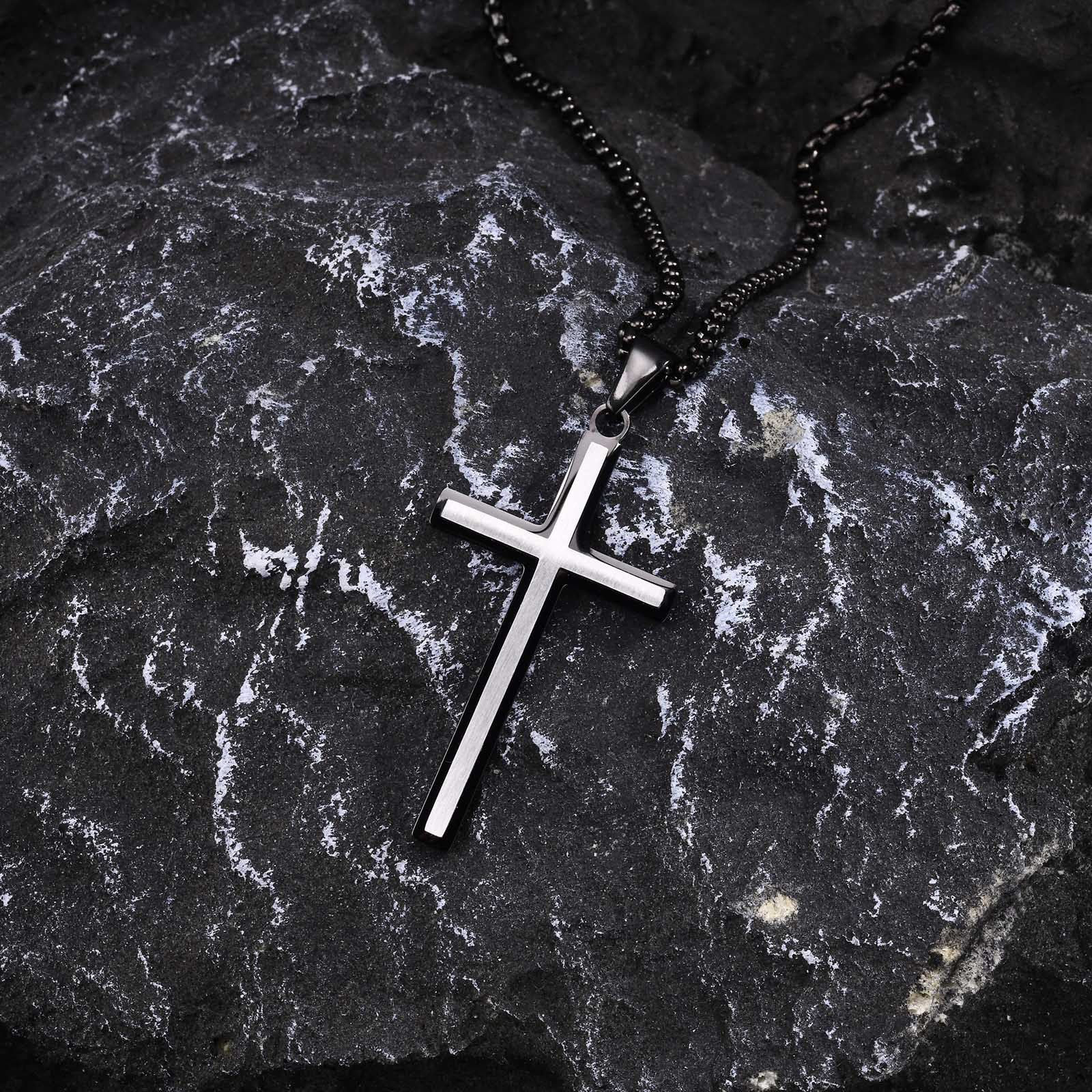 • Unique Design: The electric black finish provides a bold look that enhances the intricate cross pendant, making it a standout piece in your jewelry collection.