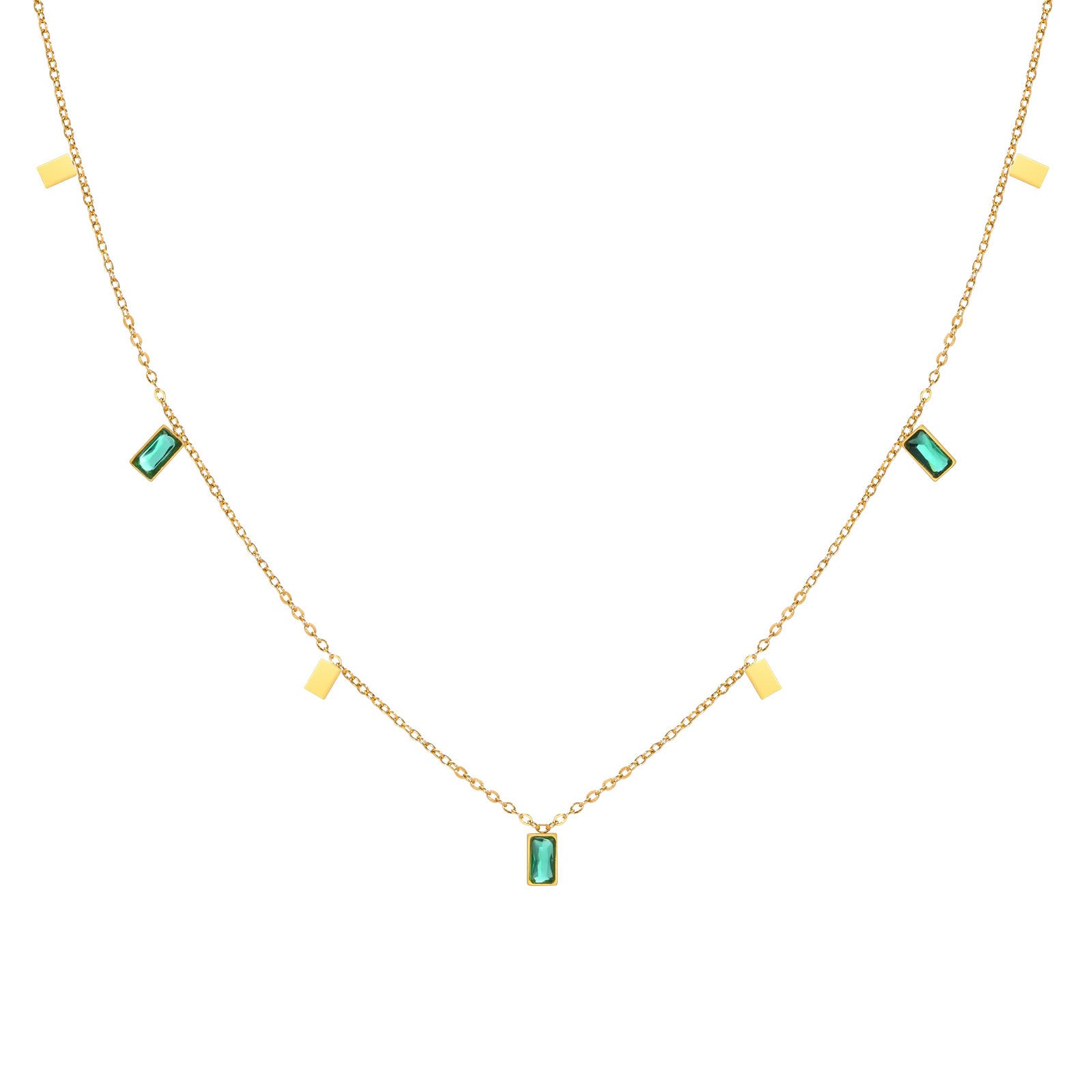 Stainless Steel Green Zircon Rectangular Necklace Gold Female