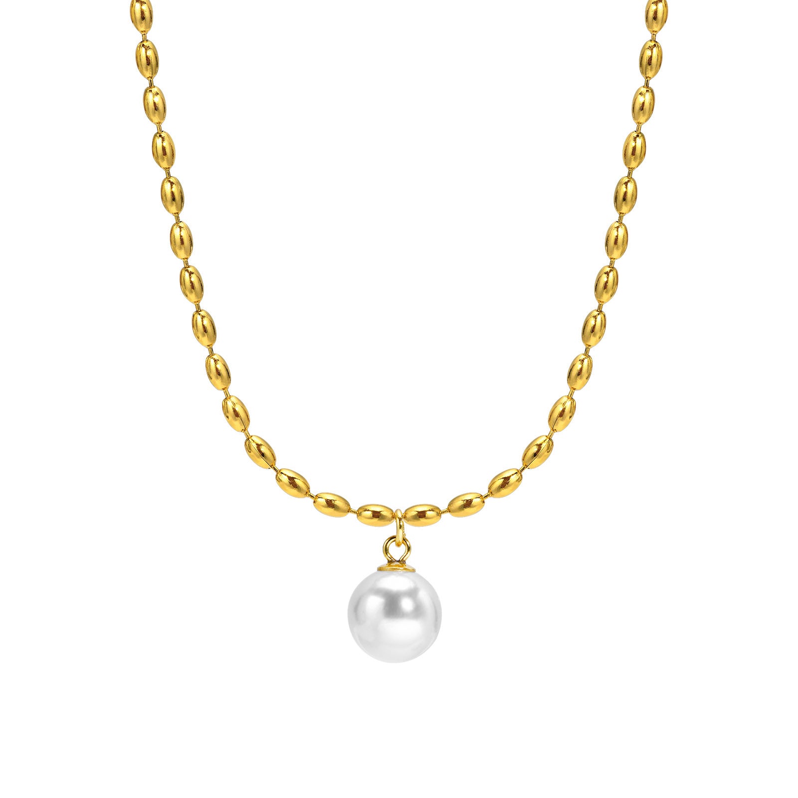 The Stainless Steel Imitation Pearl Olive Bead Necklace Golden Ladies Simple Personality is not just a piece of jewelry; it’s a statement of style and grace. With its minimalist yet sophisticated design, it’s an ideal choice for modern women who appreciate both beauty and functionality. Add this necklace to your collection and let it reflect your unique personality.