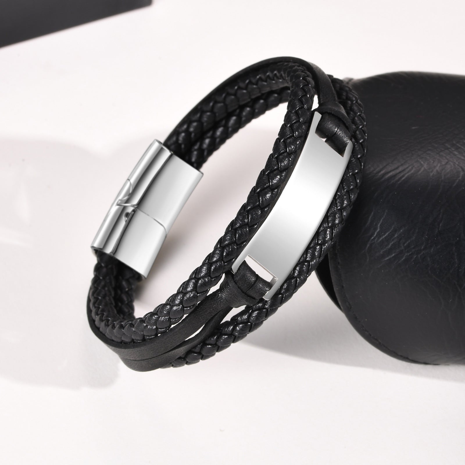 Choose the Stainless steel men's simple leather bracelet, blank curved brand microfiber leather bracelet steel color for men for its unmatched quality and stylish design. Enhance your accessory collection with this versatile bracelet that not only complements your fashion but also stands the test of time.