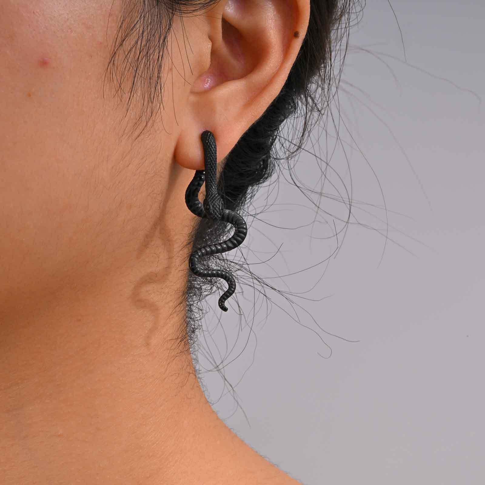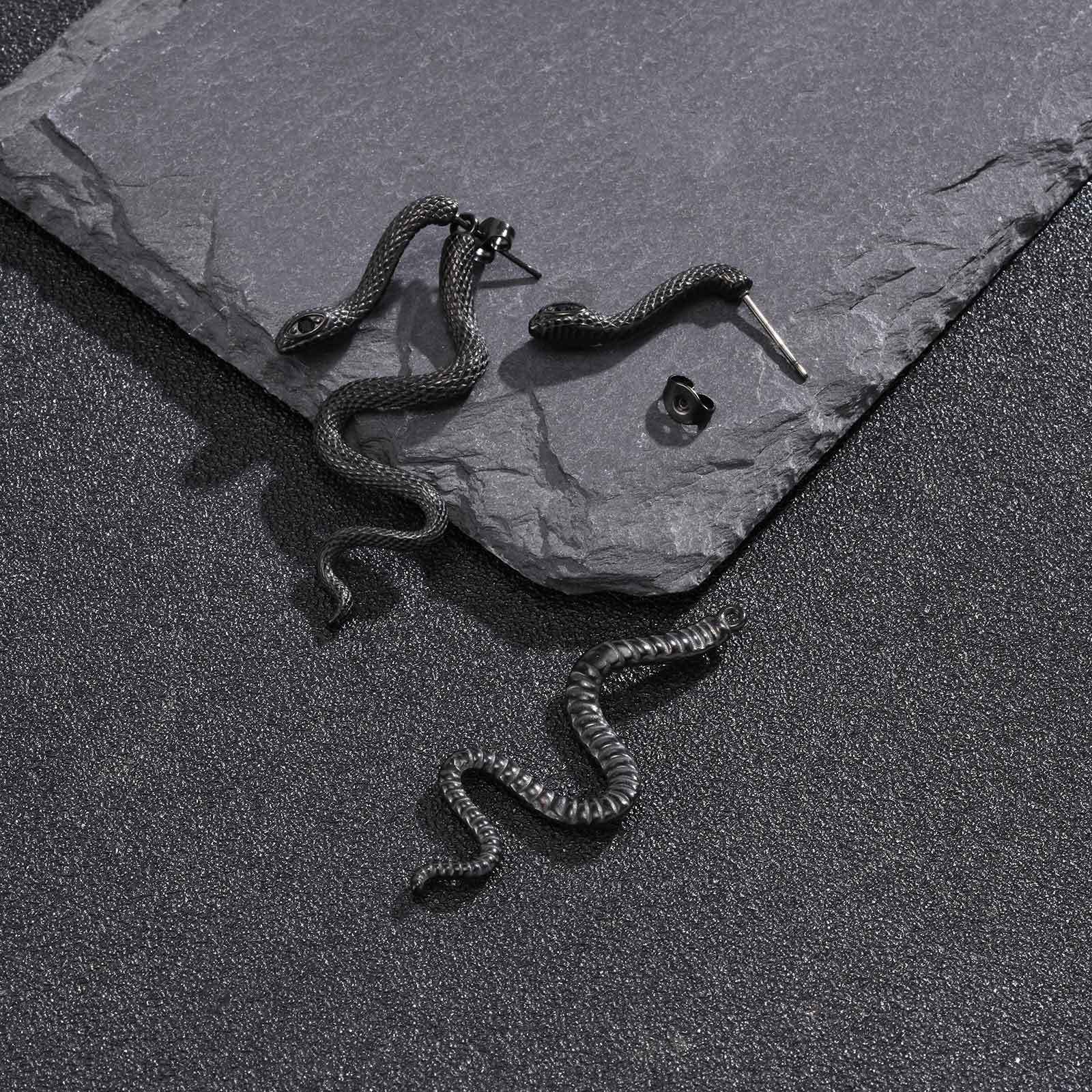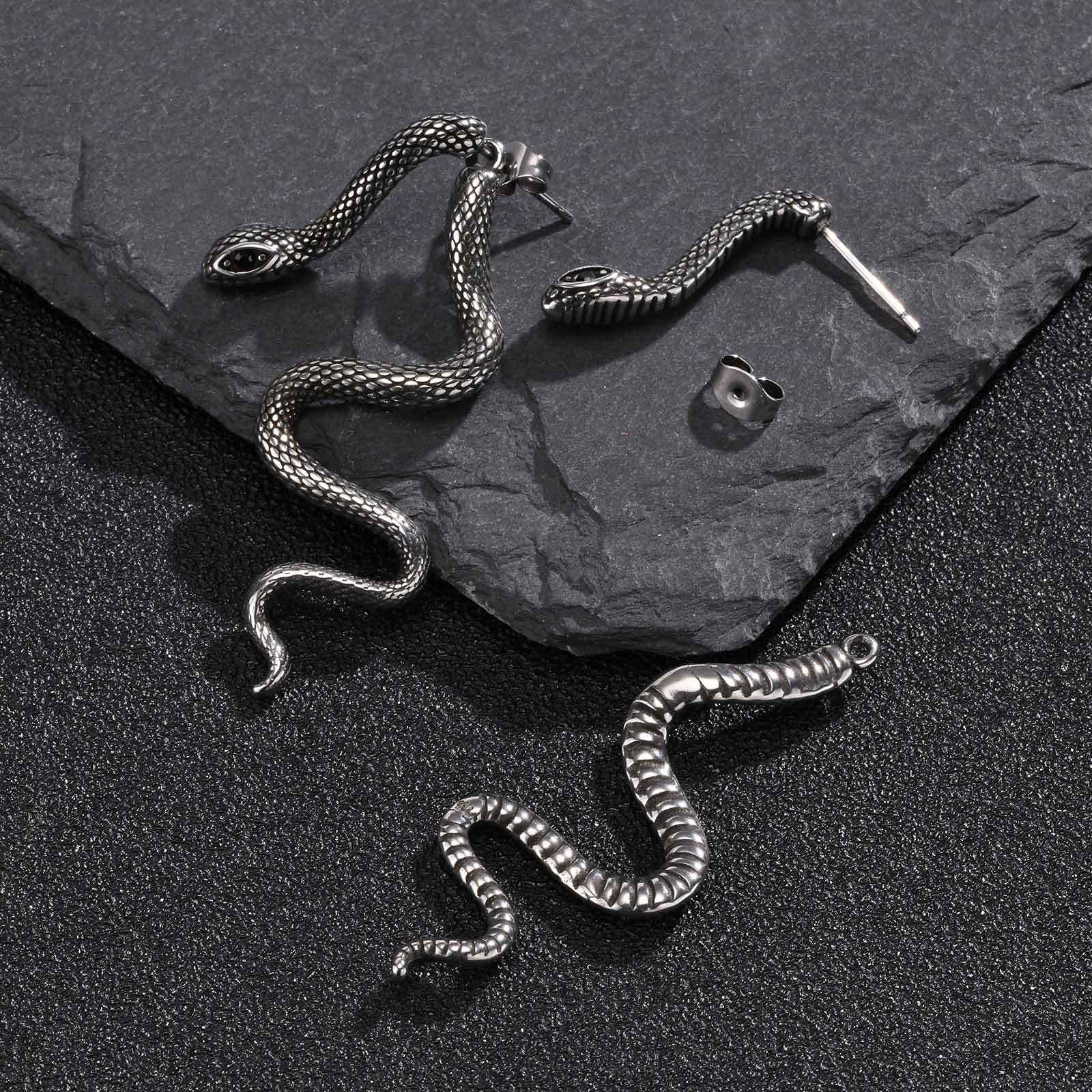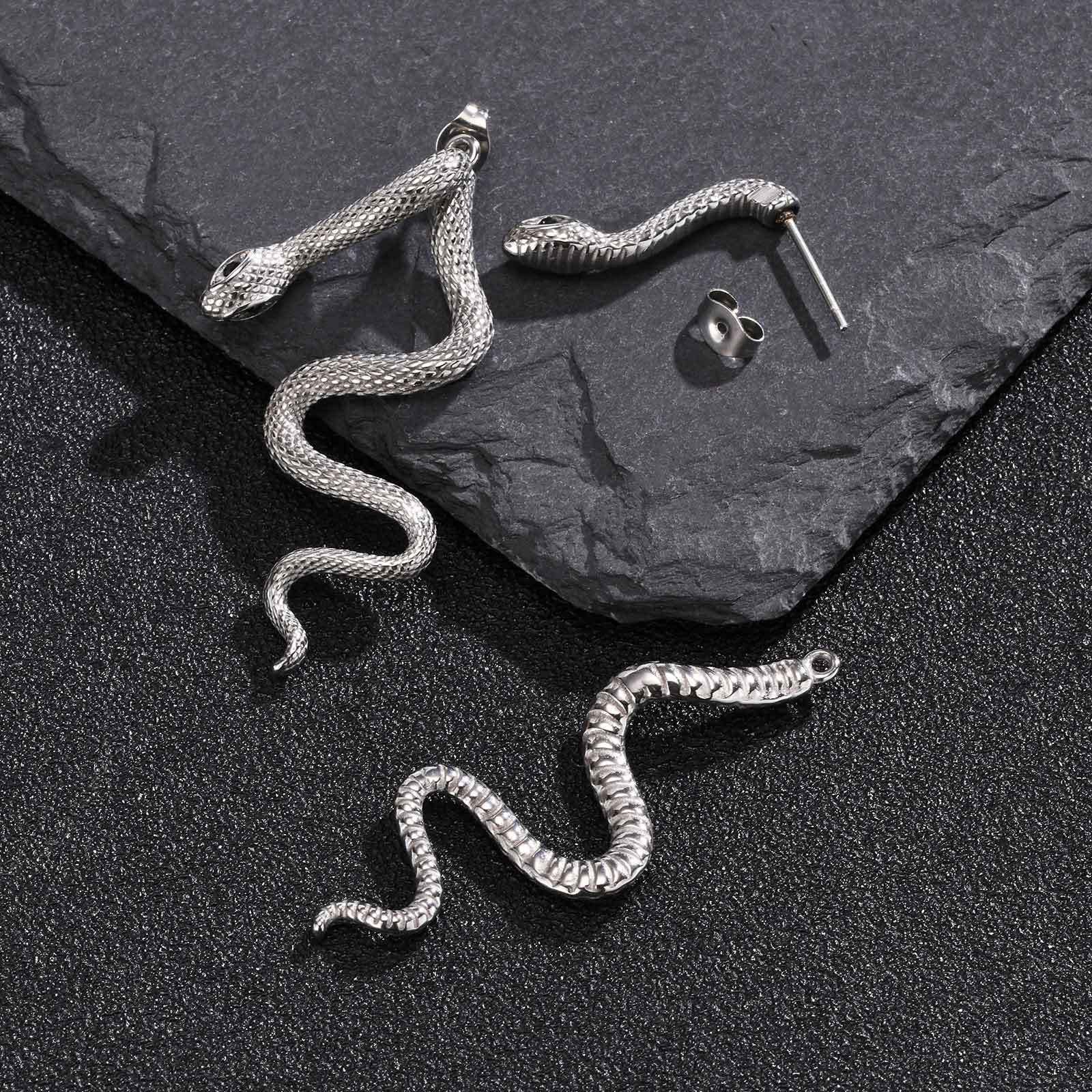These earrings offer enduring style with a sturdy stainless steel base designed for daily wear. The striking winding snake design delivers a modern statement that elevates both casual and dressy outfits, while the dark zircon accents provide a touch of sophisticated shine. A versatile addition to any jewelry collection, perfect for gifting or elevating your everyday look.