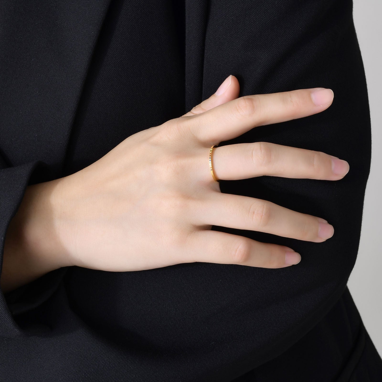 Introducing our exquisite Stainless steel thin ring 1mm inlaid with colored zircon ring colored zirconium gypsy star thin ring rainbow fine zircon ring, a stunning piece that combines elegance with contemporary design. Crafted from high-quality stainless steel, this ring is not only durable but also hypoallergenic, making it perfect for everyday wear. The 1mm thin band is delicately inlaid with a spectrum of vibrant colored zircon stones, creating a dazzling rainbow effect that catches the light beautifully.