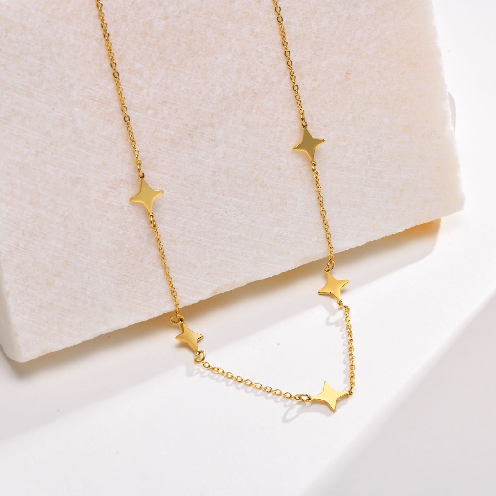 This Stainless steel versatile simple collarbone chain wholesale, heart shape, four-pointed star, necklace gold not only exudes sophistication but also offers excellent value. Its hypoallergenic nature makes it suitable for sensitive skin, while the gold finish adds a luxurious touch. Elevate your jewelry collection with a piece that is bound to turn heads and spark conversations.