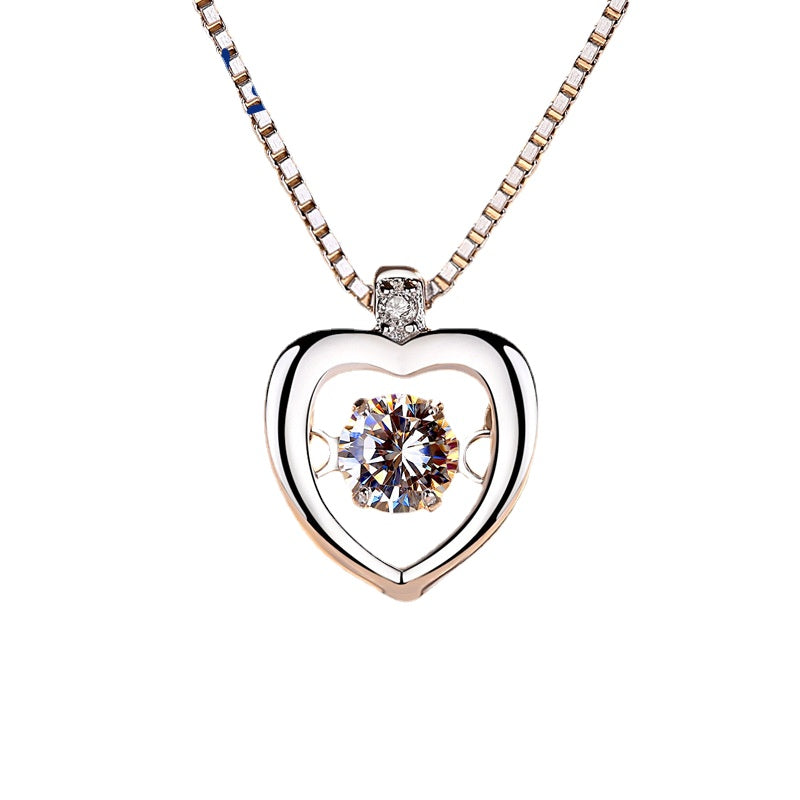 Make a statement with this sterling silver pendant . This necklace features a stunning heart-shaped pendant set with a round zircon stone that move and sparkle with every motion. The pendant has a smart design that allows the stones to rotate and catch the light. This pendant is a perfect accessory for any outfit and occasion. It is fashionable, dazzling, and versatile, suitable for any season.