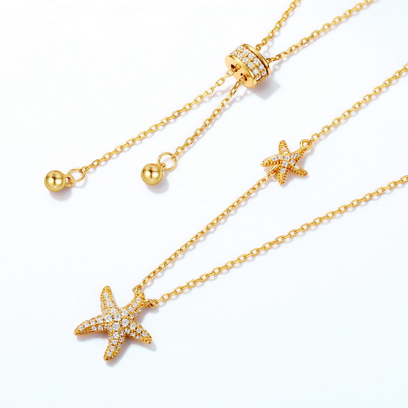 This necklace is crafted with precision and attention to detail, making it a perfect addition to your jewelry collection. Whether for a special occasion or everyday wear, the Double Zircon Starfish Adjustable Sterling Silver Necklace is a versatile and timeless piece that exudes charm and sophistication.