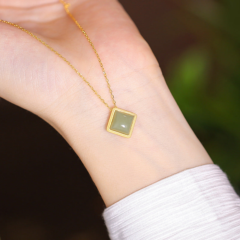 Sterling Silver Necklace with Hetian Jade Pendant - Light Luxury Edition