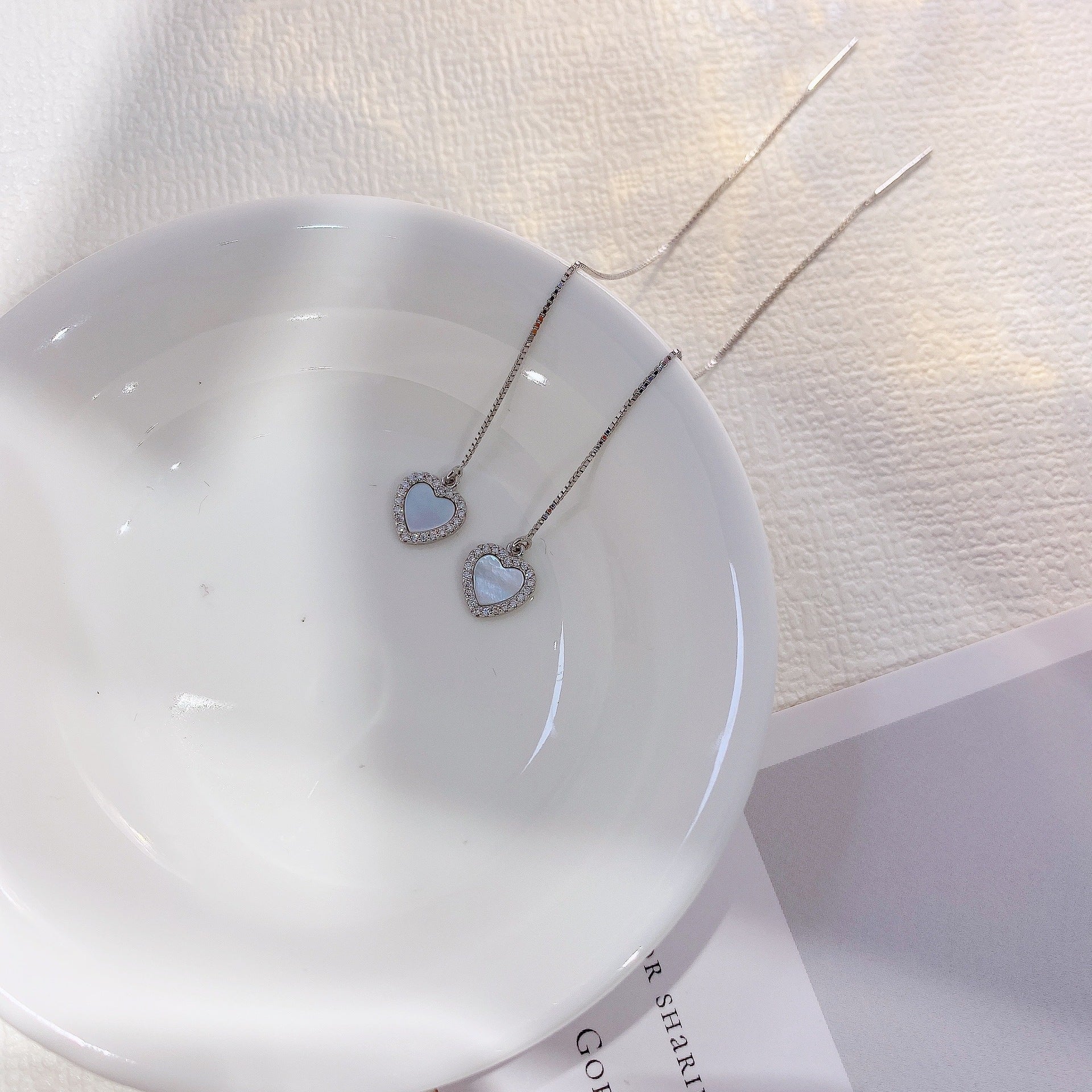 Heart-shape Mother-of-pearl Tassel Earline Silver Drop Earrings for Women