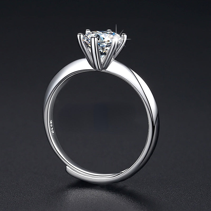 Adjustable Opening Solitaire 1.0 Carat Round Cut Moissanite Engagement Ring