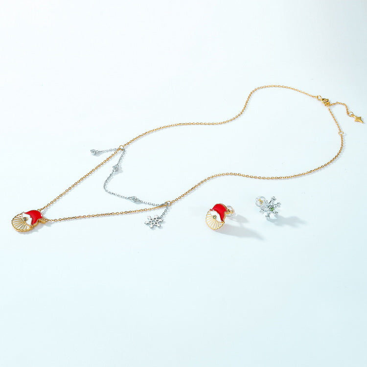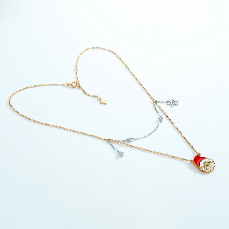 Christmas Santa Claus Pendant Snowflake Zircon Double Chain Sterling Silver Necklace