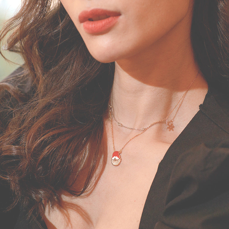 Delight in the festive season with this luxurious Sterling Silver Double-Chain Necklace. Feature unique double chains design, one golden chain with a Santa Claus Pendant adorning it, and the other silver chain with a Snowflake and small round Zircons. An exquisite piece to make your holiday season even more special. Crafted with sterling silver, this elegant Necklace is sure to bring a touch of luxury to your festive wardrobe. Get into a festive mood with its unique design. This piece of jewellery is the perfect way to make the holiday season even more special.